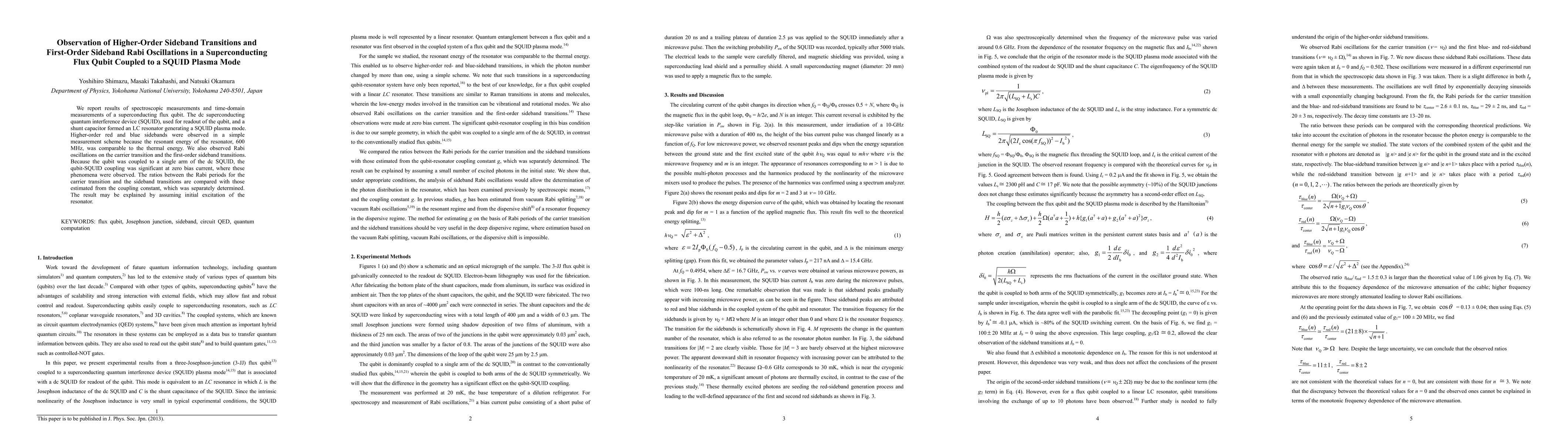 Researchers observed higher-order sideband transitions and first-order sideband Rabi oscillations in a superconducting flux qubit coupled to a SQUID plasma mode, revealing significant coupling at zero bias current.
