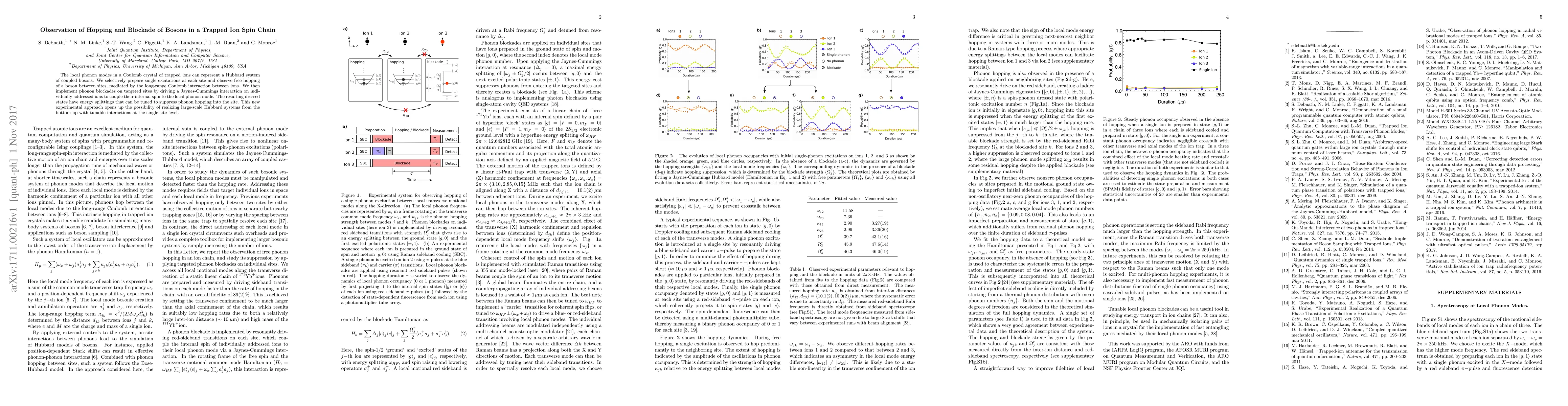 This paper observes the hopping of bosons in a trapped ion spin chain mediated by Coulomb interactions and implements phonon blockades to suppress hopping by tuning dressed states. This approach enables the creation of large-scale Hubbard systems with tunable interactions at the single-site level.