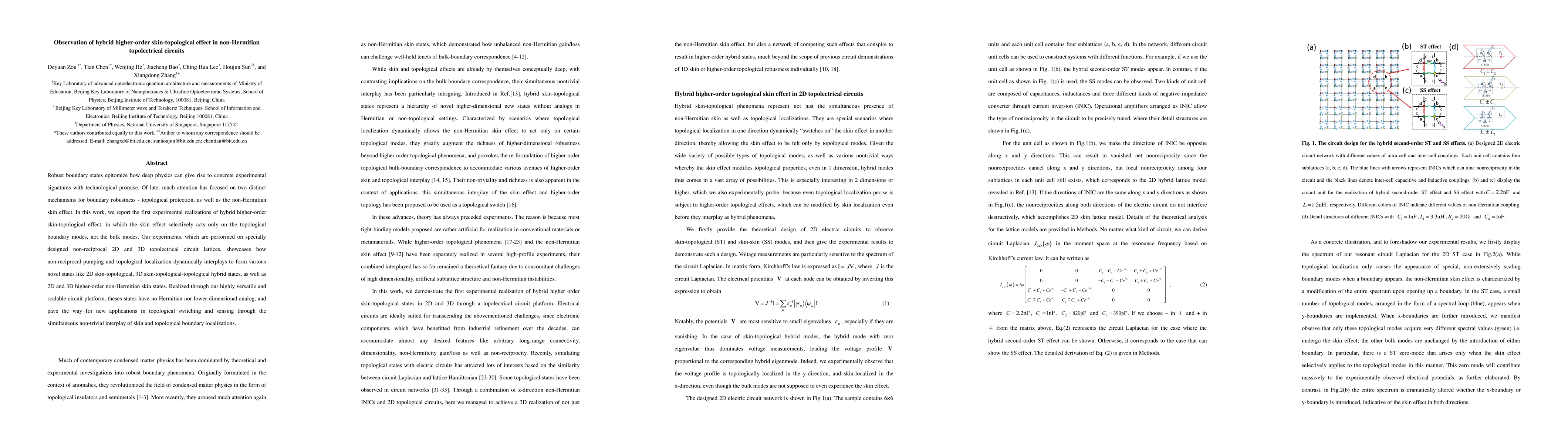 This research experimentally demonstrates hybrid higher-order skin-topological effects in non-Hermitian topolectrical circuits, showcasing novel states like 2D and 3D skin-topological hybrid states and higher-order non-Hermitian skin states. These findings, achieved via specially designed non-reciprocal circuit lattices, suggest new applications in topological switching and sensing.
