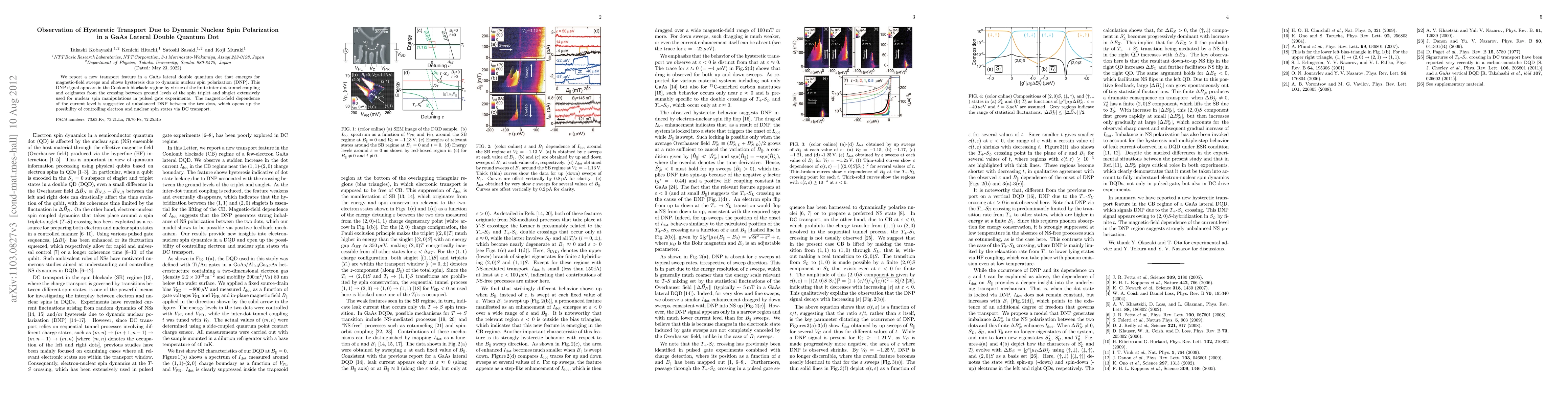This study observes hysteretic transport in a GaAs lateral double quantum dot caused by dynamic nuclear spin polarization during magnetic field sweeps, revealing a large DNP signal indicative of unbalanced polarization between the dots, potentially enabling control of spin states via DC transport.