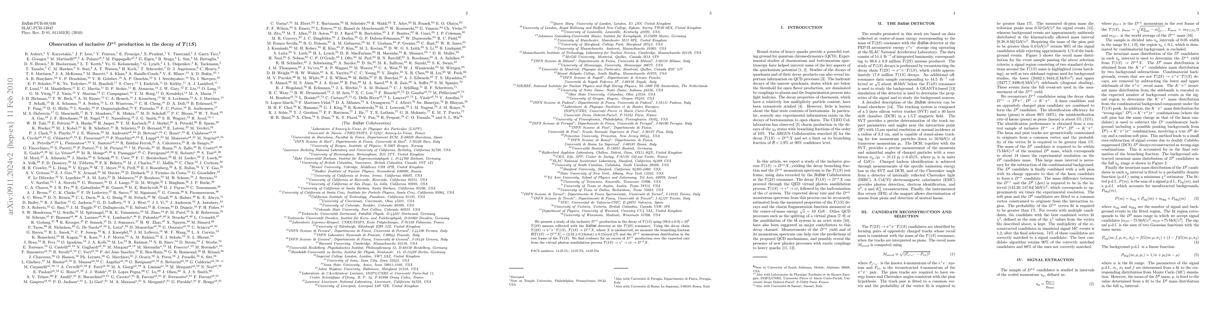 We present a study of the inclusive $D^{*\pm}$ production in the decay of $\Upsilon(1S)$ using $(98.6 \pm 0.9)\times 10^6$ $\Upsilon(2S)$ mesons collected with the BaBar detector at the $\Upsilon(2S)$ resonance. Using the decay chain $\Upsilon(2S)\to \pi^+ \pi^- \Upsilon(1S), \Upsilon(1S) \to D^{*\pm} X$, where X is unobserved, we measure the branching fraction $\BR[\Upsilon(1S)\to D^{*\pm} X] = (2.52 \pm 0.13({\rm stat}) \pm 0.15({\rm syst}))%$ and the $D^{*\pm}$ momentum distribution in the rest frame of the $\Upsilon(1S)$. We find evidence for an excess of $D^{*\pm}$ production over the expected rate from the virtual photon annihilation process $\Upsilon(1S)\to\gamma^*\to c\bar c\to D^{*\pm} X$.