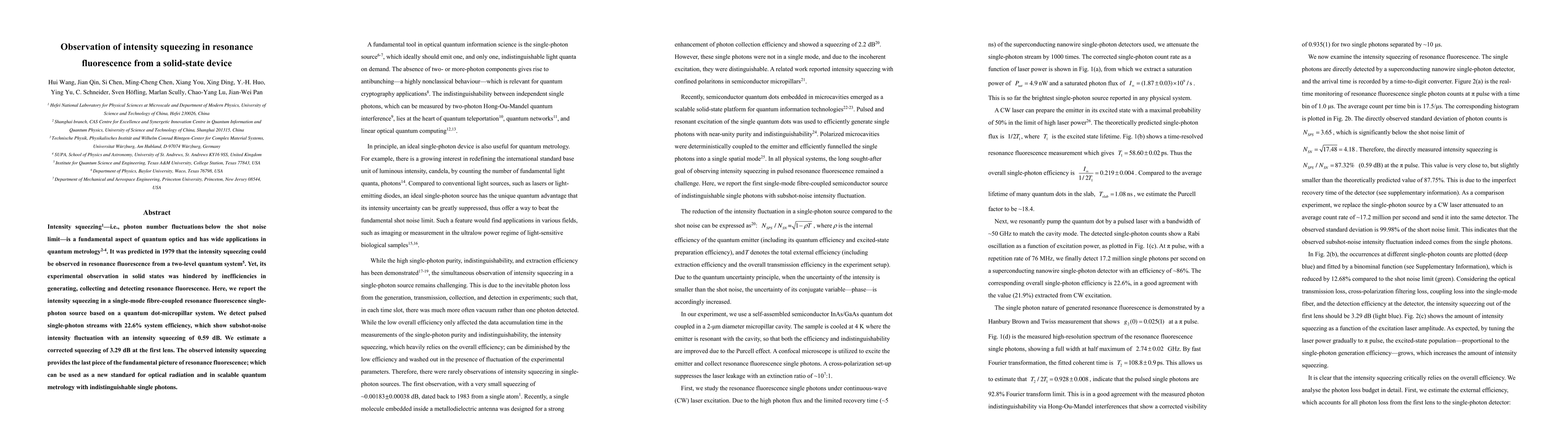 The study demonstrates the first observation of intensity squeezing in pulsed resonance fluorescence from a highly-indistinguishable solid-state single-photon source.