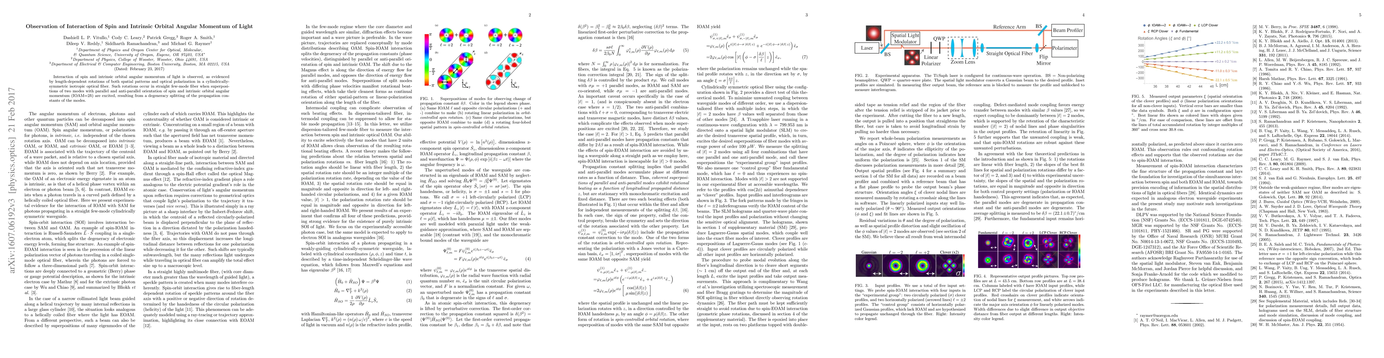 This paper observes the interaction between light's spin and intrinsic orbital angular momentum, demonstrating length-dependent rotations in spatial patterns and optical polarization in an isotropic optical fiber. The rotations arise from mode superpositions in few-mode fiber, revealing a degeneracy splitting in propagation constants.
