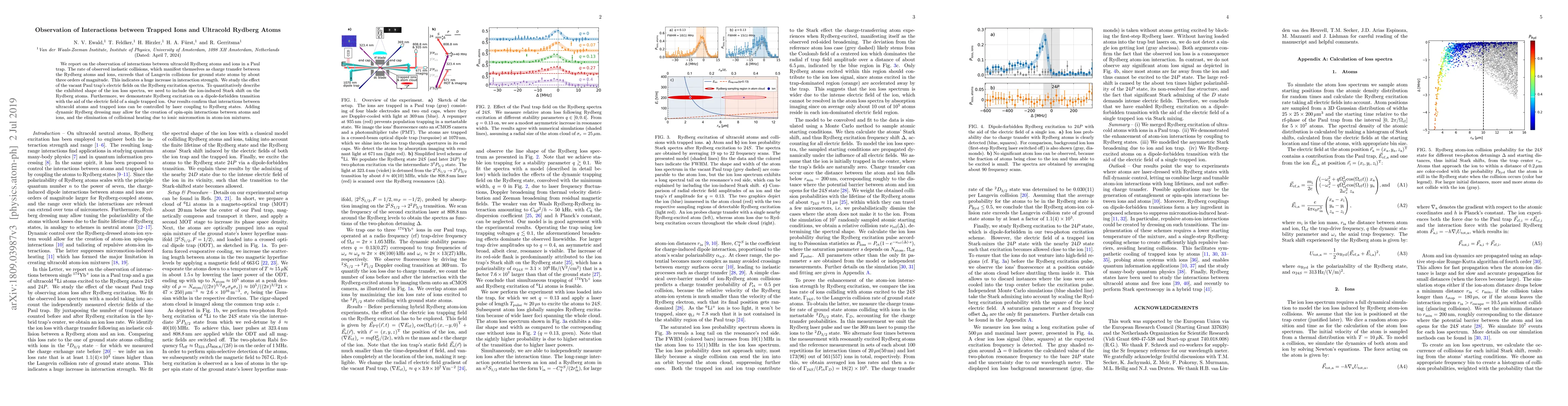 This paper observes significant interactions between ultracold Rydberg atoms and trapped ions, showing charge transfer rates three orders of magnitude higher than ground state collisions. The study highlights the influence of electric fields on Rydberg excitation spectra and demonstrates controlled Rydberg excitation via laser coupling, suggesting potential for spin-spin interactions and collisional heating elimination.