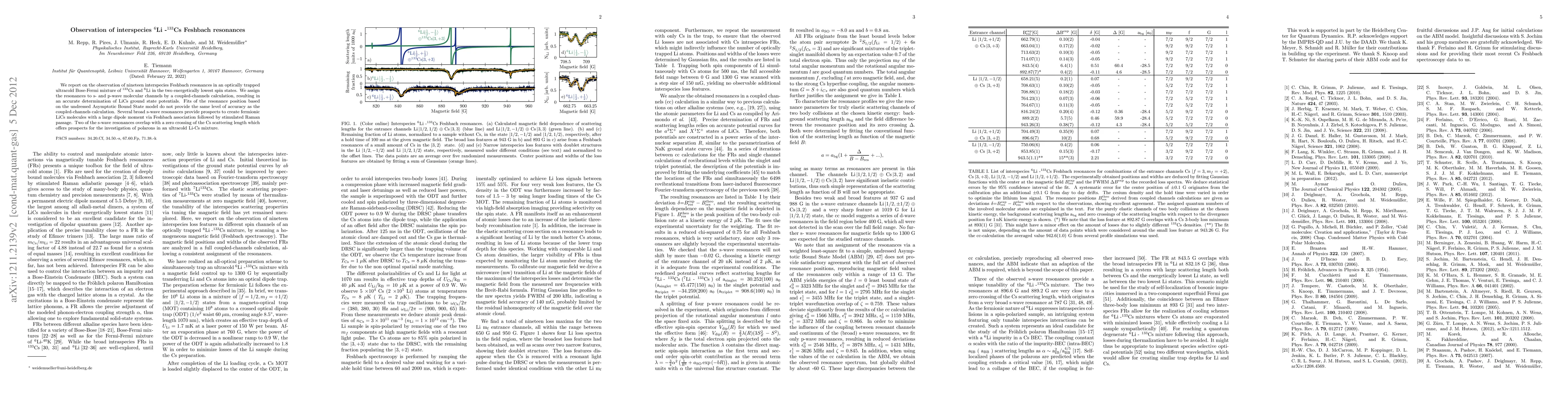 Paul S. Julienne, Y. -D. Chen, S. Tung et al.
