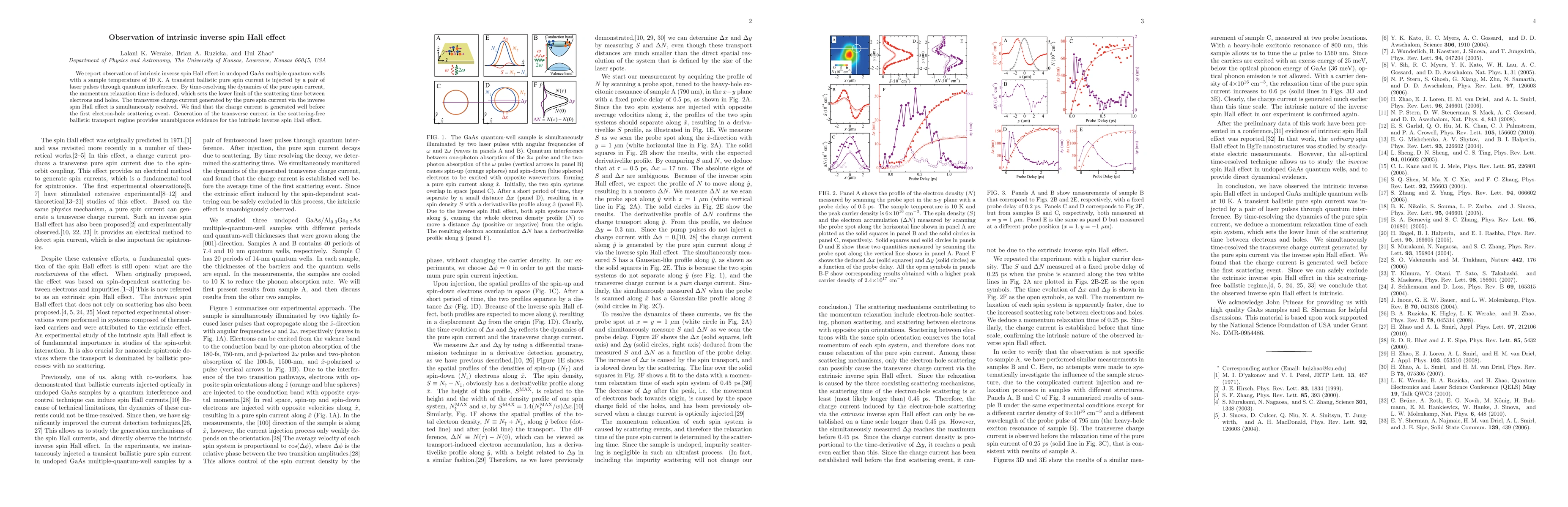 This research observes the intrinsic inverse spin Hall effect in undoped GaAs multiple quantum wells at 10 K, utilizing laser pulse injection to create a transient ballistic spin current. The study reveals that the generated transverse charge current occurs before any electron-hole scattering, confirming the intrinsic nature of the effect.