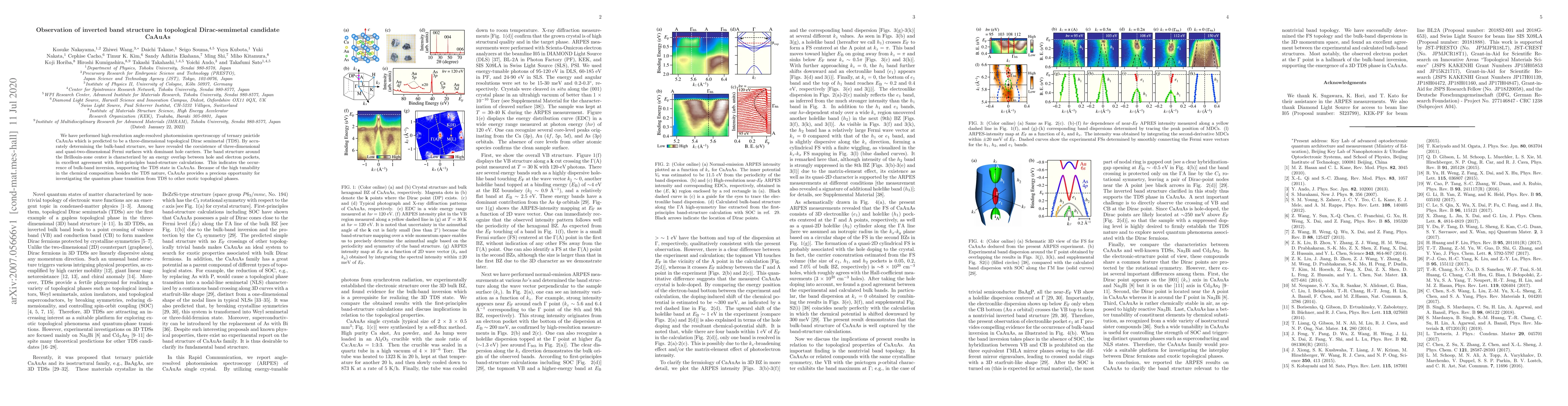This work demonstrates the first experimental observation of the bulk-band inversion in CaAuAs, a predicted 3D topological Dirac semimetal candidate, providing strong evidence for its exotic electronic properties.