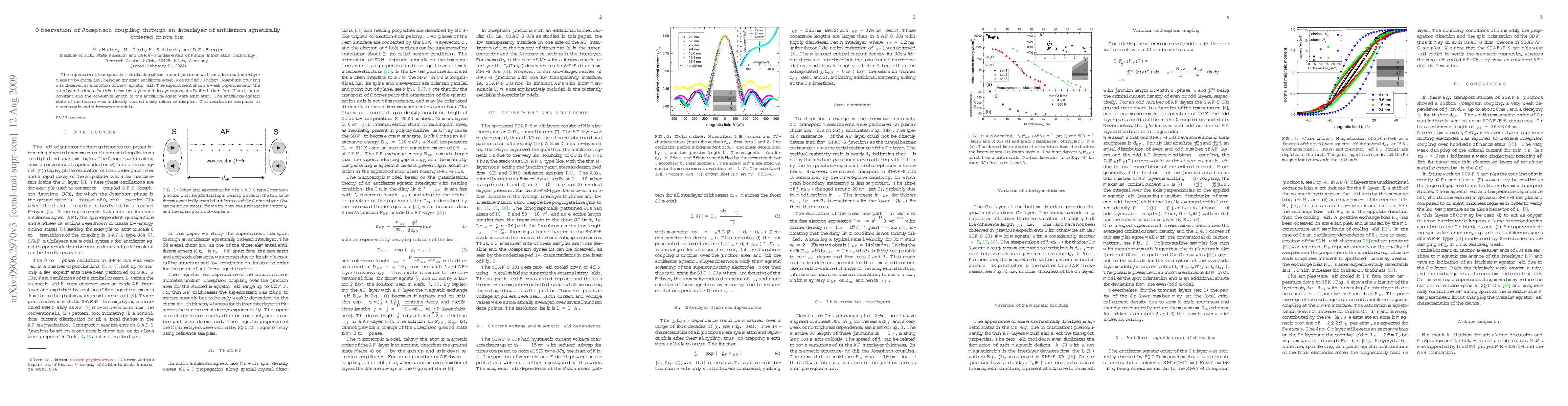 The supercurrent transport in metallic Josephson tunnel junctions with an additional interlayer made up by chromium, being an itinerant antiferromagnet, was studied. Uniform Josephson coupling was observed as a function of the magnetic field. The supercurrent shows a weak dependence on the interlayer thickness for thin chromium layers and decays exponentially for thicker films. The diffusion constant and the coherence length in the antiferromagnet were estimated. The antiferromagnetic state of the barrier was indirectly verified using reference samples. Our results are compared to macroscopic and microscopic models.