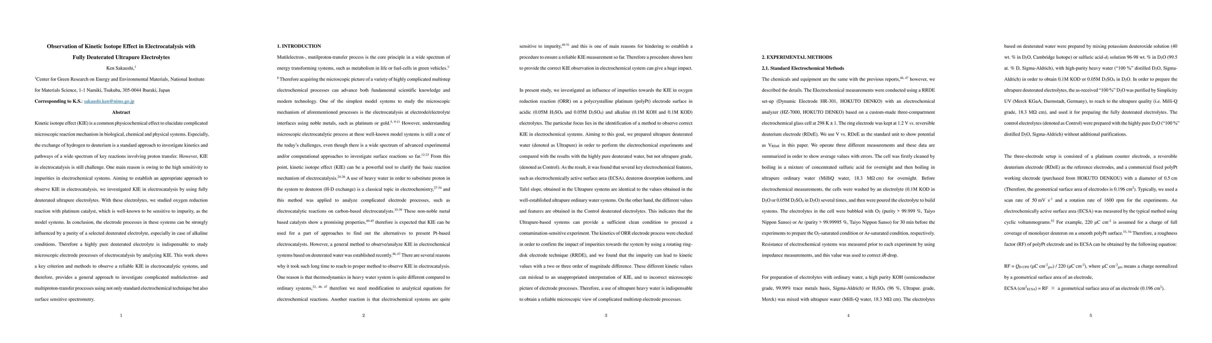 Kinetic isotope effect (KIE) is a common physicochemical effect to elucidate complicated microscopic reaction mechanism in biological, chemical and physical systems. Especially, the exchange of hydrogen to deuterium is a standard approach to investigate kinetics and pathways of a wide spectrum of key reactions involving proton transfer. However, KIE in electrocatalysis is still challenge. One main reason is owing to the high sensitivity to impurities in electrochemical systems. Aiming to establish an appropriate approach to observe KIE in electrocatalysis, we investigated KIE in electrocatalysis by using fully deuterated ultrapure electrolytes. With these electrolytes, we studied oxygen reduction reaction with platinum catalyst, which is well-known to be sensitive to impurity, as the model systems. In conclusion, the electrode processes in these systems can be strongly influenced by a purity of a selected deuterated electrolyte, especially in case of alkaline conditions. Therefore a highly pure deuterated electrolyte is indispensable to study microscopic electrode processes of electrocatalysis by analyzing KIE. This work shows a key criterion and methods to observe a reliable KIE in electrocatalytic systems, and therefore, provides a general approach to investigate complicated multielectron- and multiproton-transfer processes using not only standard electrochemical technique but also surface sensitive spectrometry.