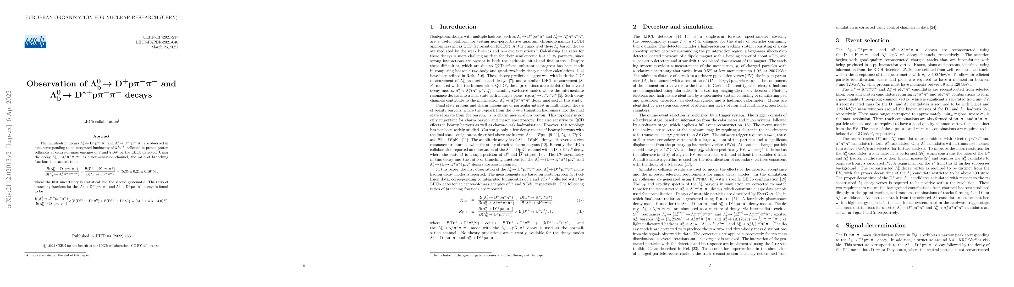 This paper reports the observation of two multihadron decay processes, $\Lambda_b^0\rightarrow D^+ p \pi^-\pi^-$ and $\Lambda_b^0\rightarrow D^{*+} p \pi^-\pi^-$, using data from LHCb at 7 and 8 TeV. The branching fraction ratios are measured with significant precision, providing insights into the decay dynamics of $\Lambda_b^0$ baryons.