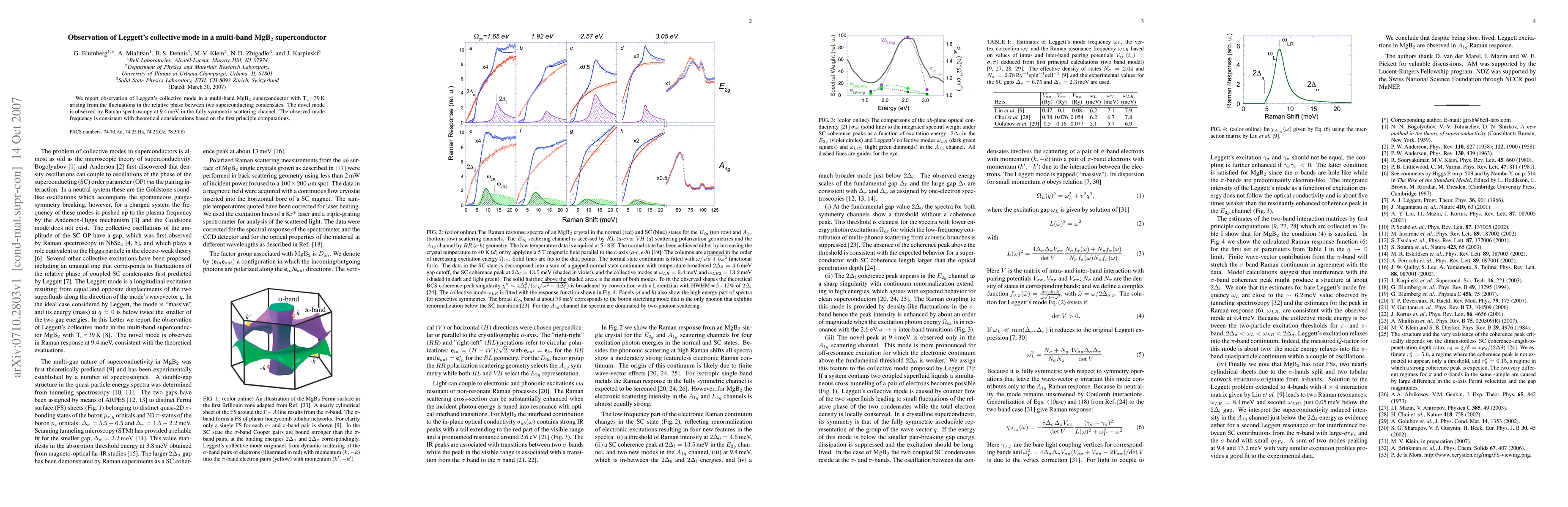 Researchers have observed Leggett's collective mode in a multi-band MgB2 superconductor, a phenomenon arising from fluctuations between two superconducting condensates, at 9.4 meV frequency.