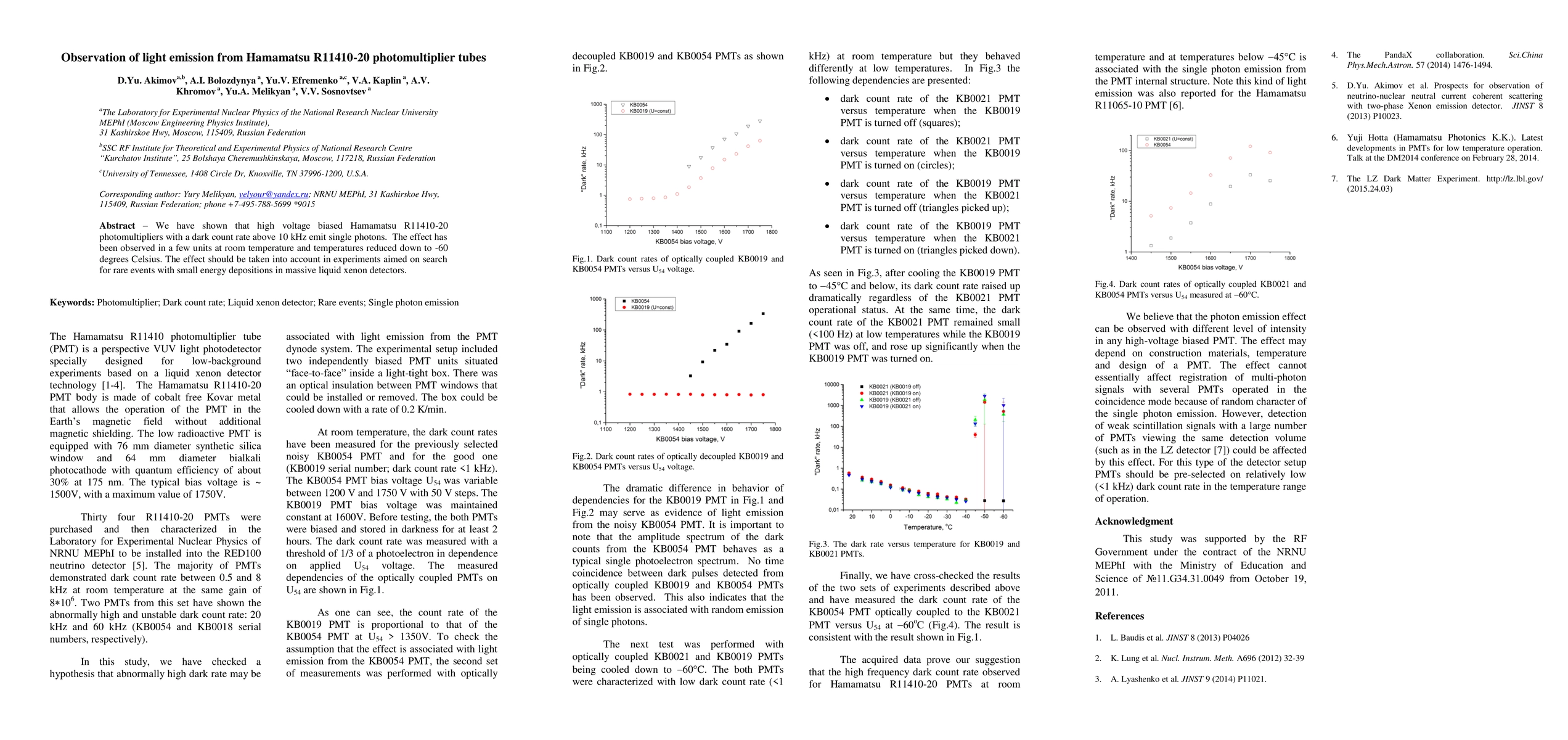 We have shown that high voltage biased Hamamatsu R11410-20 photomultipliers with a dark count rate above 10 kHz emit single photons. The effect has been observed in a few units at room temperature and temperatures reduced down to -60 degrees Celsius. The effect should be taken into account in experiments aimed on search for rare events with small energy depositions in massive liquid xenon detectors.