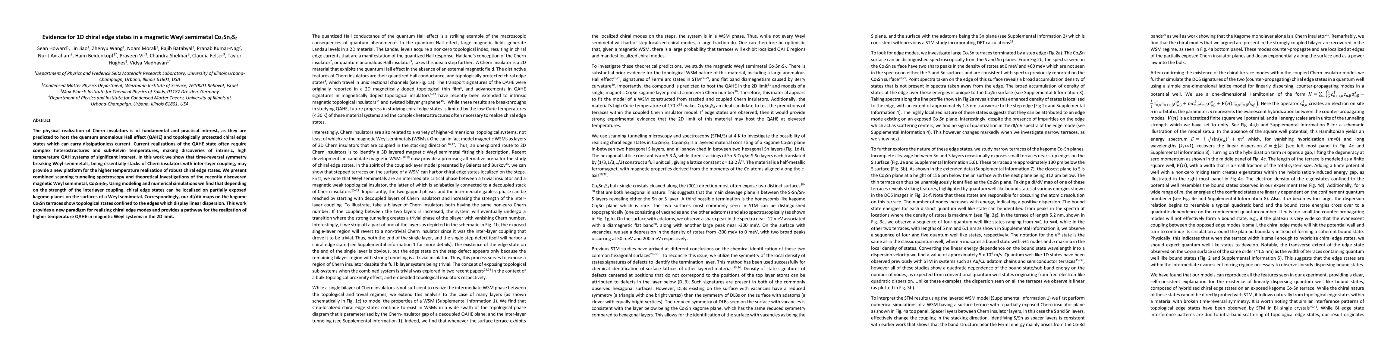 The physical realization of Chern insulators is of fundamental and practical interest, as they are predicted to host the quantum anomalous Hall effect (QAHE) and topologically protected chiral edge states which can carry dissipationless current. The realization of the QAHE state has however been challenging because of the complex heterostructures and sub-Kelvin temperatures required. Time-reversal symmetry breaking Weyl semimetals, being essentially stacks of Chern insulators with inter-layer coupling, may provide a new platform for the higher temperature realization of robust QAHE edge states. In this work we present a combined scanning tunneling spectroscopy and theoretical investigation of a newly discovered magnetic Weyl semimetal, Co3Sn2S2. Using modeling and numerical simulations we find that chiral edge states can be localized on partially exposed Kagome planes on the surface of a Weyl semimetal. Correspondingly, our STM dI/dV maps on narrow kagome Co3Sn terraces show linearly dispersing quantum well like states, which can be attributed to hybridized chiral edge modes. Our experiment and theory results suggest a new paradigm for studying chiral edge modes in time-reversal breaking Weyl semimetals. More importantly, this work leads a practical route for realizing higher temperature QAHE.