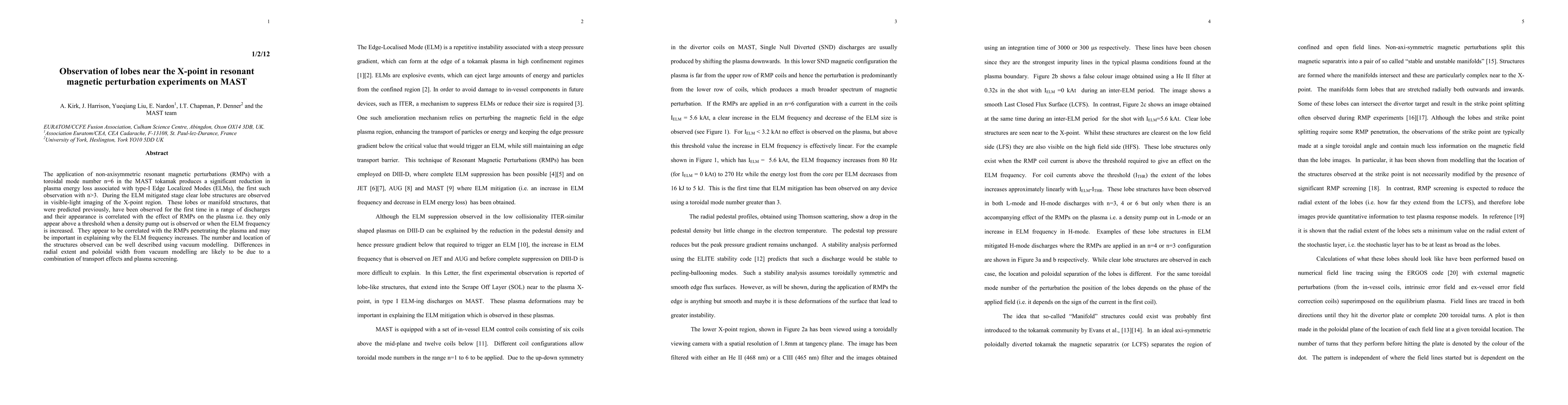 The application of non-axisymmetric resonant magnetic perturbations (RMPs) with a toroidal mode number n=6 in the MAST tokamak produces a significant reduction in plasma energy loss associated with type-I Edge Localized Modes (ELMs), the first such observation with n>3. During the ELM mitigated stage clear lobe structures are observed in visible-light imaging of the X-point region. These lobes or manifold structures, that were predicted previously, have been observed for the first time in a range of discharges and their appearance is correlated with the effect of RMPs on the plasma i.e. they only appear above a threshold when a density pump out is observed or when the ELM frequency is increased. They appear to be correlated with the RMPs penetrating the plasma and may be important in explaining why the ELM frequency increases. The number and location of the structures observed can be well described using vacuum modelling. Differences in radial extent and poloidal width from vacuum modelling are likely to be due to a combination of transport effects and plasma screening.