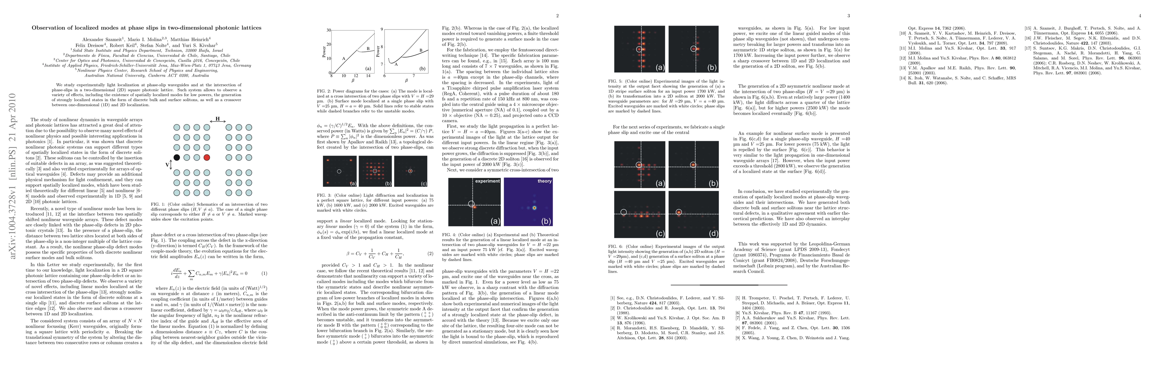 The research observes light localization at phase-slip waveguides and their intersections in a 2D square photonic lattice, revealing spatially localized modes, discrete bulk and surface solitons, and a transition from 1D to 2D localization.