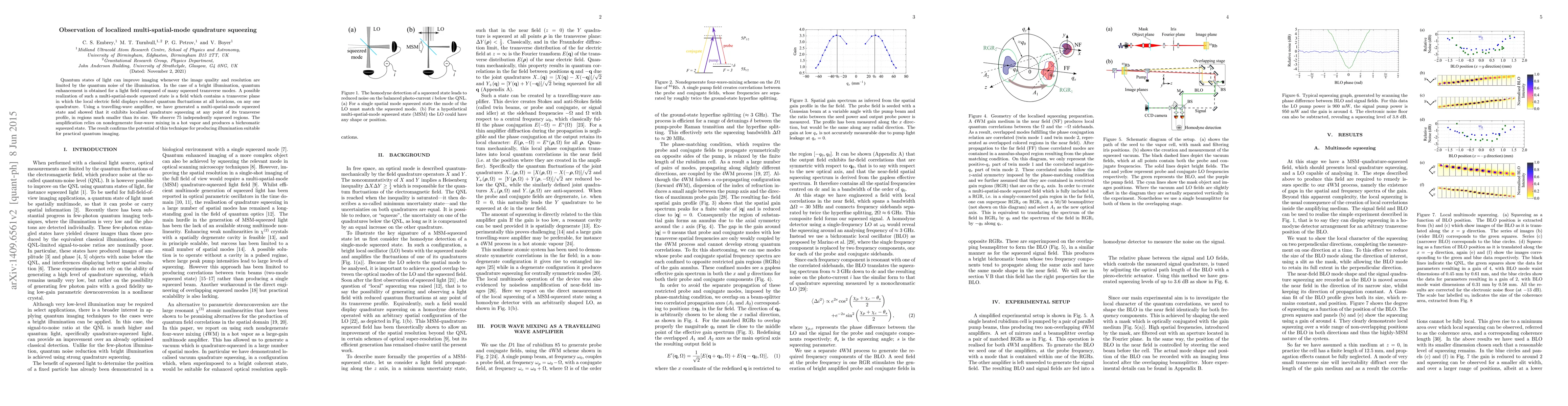 Quantum states of light can improve imaging whenever the image quality and resolution are limited by the quantum noise of the illumination. In the case of a bright illumination, quantum enhancement is obtained for a light field composed of many squeezed transverse modes. A possible realization of such a multi-spatial-mode squeezed state is a field which contains a transverse plane in which the local electric field displays reduced quantum fluctuations at all locations, on any one quadrature. Using nondegenerate four-wave mixing in a hot vapor, we have generated a bichromatic multi-spatial-mode squeezed state and showed that it exhibits localised quadrature squeezing at any point of its transverse profile, in regions much smaller than its size. We observe 75 independently squeezed regions. This confirms the potential of this technique for producing illumination suitable for practical quantum imaging.