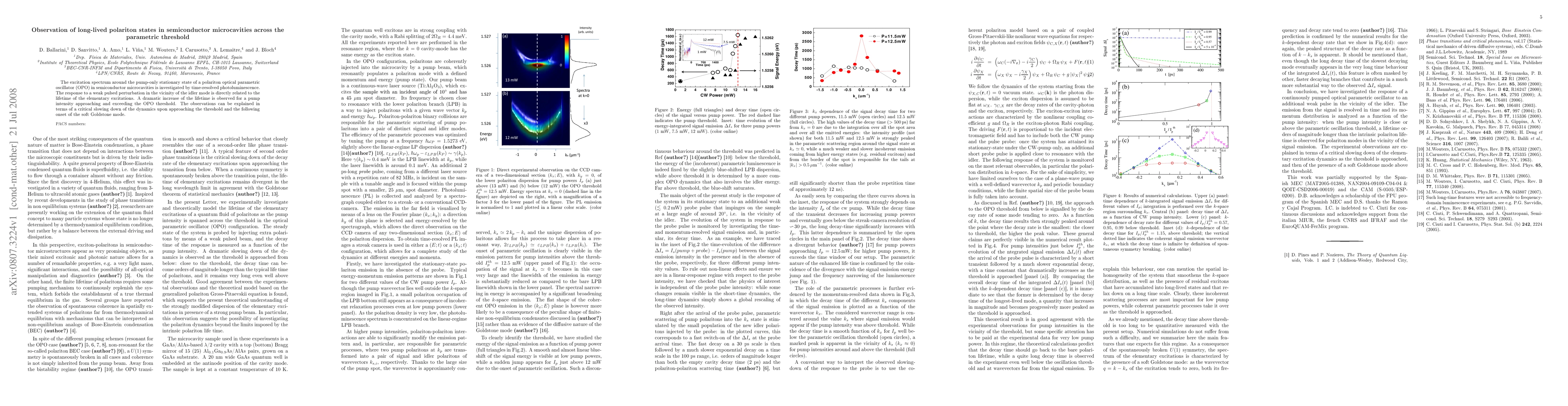 The paper presents a detailed analysis of polariton lifetimes and dynamics near the parametric oscillation threshold, utilizing time-resolved photoluminescence to probe the excitation spectrum.