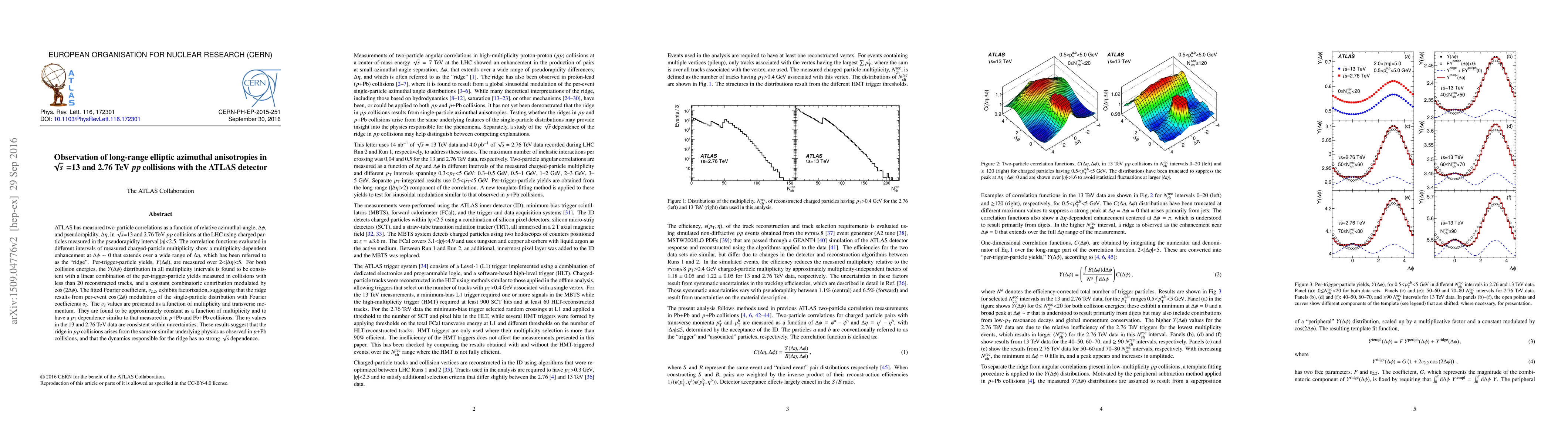 ATLAS has measured two-particle correlations as a function of relative azimuthal-angle, $\Delta \phi$, and pseudorapidity, $\Delta \eta$, in $\sqrt{s}$=13 and 2.76 TeV $pp$ collisions at the LHC using charged particles measured in the pseudorapidity interval $|\eta|$<2.5. The correlation functions evaluated in different intervals of measured charged-particle multiplicity show a multiplicity-dependent enhancement at $\Delta \phi \sim 0$ that extends over a wide range of $\Delta\eta$, which has been referred to as the "ridge". Per-trigger-particle yields, $Y(\Delta \phi)$, are measured over 2<$|\Delta\eta|$<5. For both collision energies, the $Y(\Delta \phi)$ distribution in all multiplicity intervals is found to be consistent with a linear combination of the per-trigger-particle yields measured in collisions with less than 20 reconstructed tracks, and a constant combinatoric contribution modulated by $\cos{(2\Delta \phi)}$. The fitted Fourier coefficient, $v_{2,2}$, exhibits factorization, suggesting that the ridge results from per-event $\cos{(2\phi)}$ modulation of the single-particle distribution with Fourier coefficients $v_2$. The $v_2$ values are presented as a function of multiplicity and transverse momentum. They are found to be approximately constant as a function of multiplicity and to have a $p_{\mathrm{T}}$ dependence similar to that measured in $p$+Pb and Pb+Pb collisions. The $v_2$ values in the 13 and 2.76 TeV data are consistent within uncertainties. These results suggest that the ridge in $pp$ collisions arises from the same or similar underlying physics as observed in $p$+Pb collisions, and that the dynamics responsible for the ridge has no strong $\sqrt{s}$ dependence.
