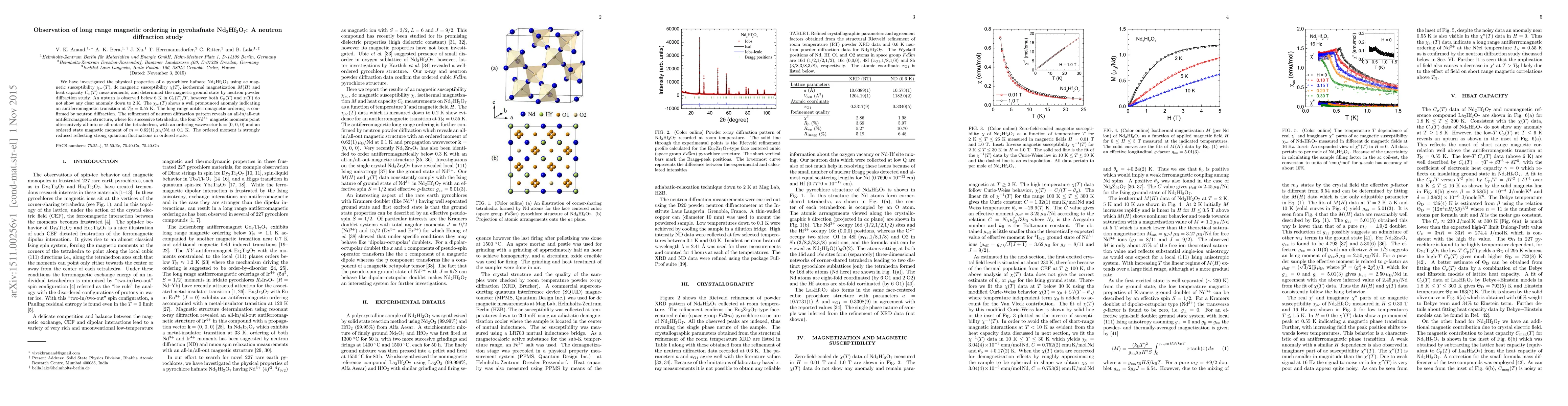 Researchers studied pyrochlore hafnate Nd2Hf2O7 using neutron diffraction to confirm long-range antiferromagnetic ordering at 0.55 K, with an ordered moment of 0.62 φ_B/Nd.