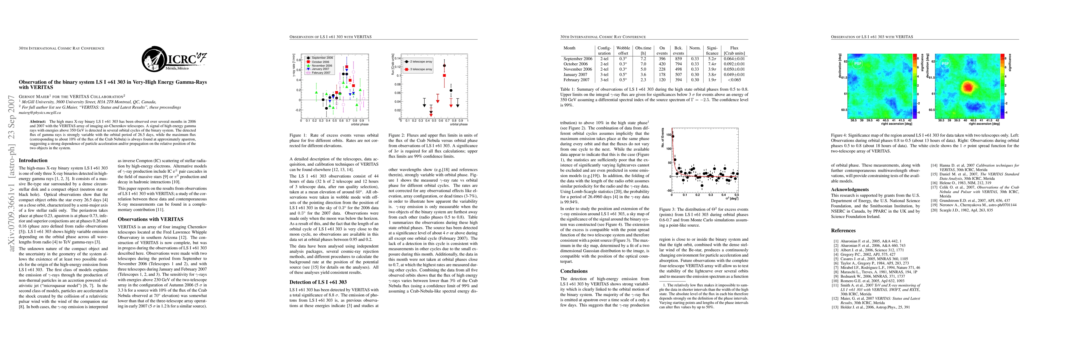The VERITAS array detected high-energy gamma rays from X-ray binary LS I +61 303, showing strong variability with its orbital period, suggesting a connection between particle acceleration and the objects' relative positions.
