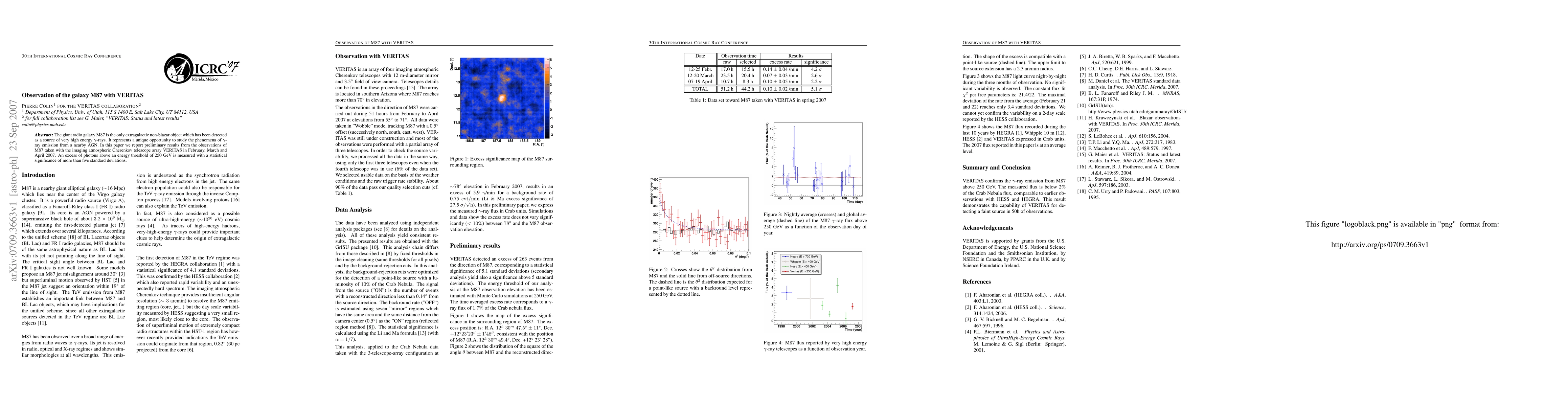 The research used an imaging atmospheric Cherenkov telescope array VERITAS to observe M87 in February, March, and April 2007.