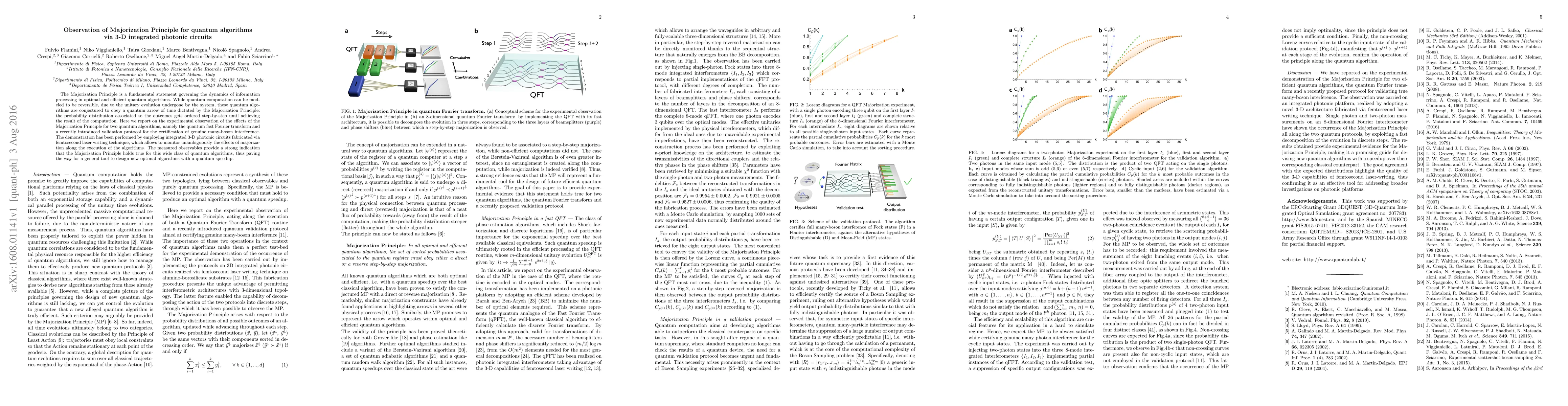 This paper experimentally observes the Majorization Principle in quantum algorithms using 3-D integrated photonic circuits, demonstrating its effects in quantum fast Fourier transform and a many-boson interference certification protocol. The results suggest the principle's validity, potentially aiding the design of new quantum algorithms with speedup.