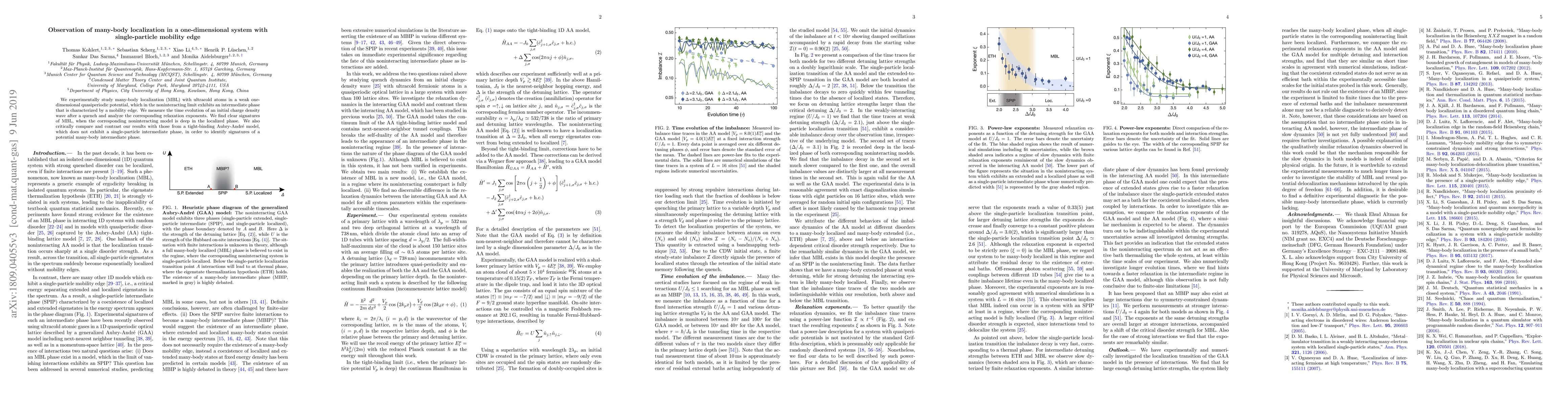 This research experimentally observes many-body localization in a one-dimensional quasiperiodic system using ultracold atoms, identifying signatures of localization and comparing it with a tight-binding model that lacks a single-particle intermediate phase. The study finds clear evidence of MBL when the noninteracting model is deeply localized.
