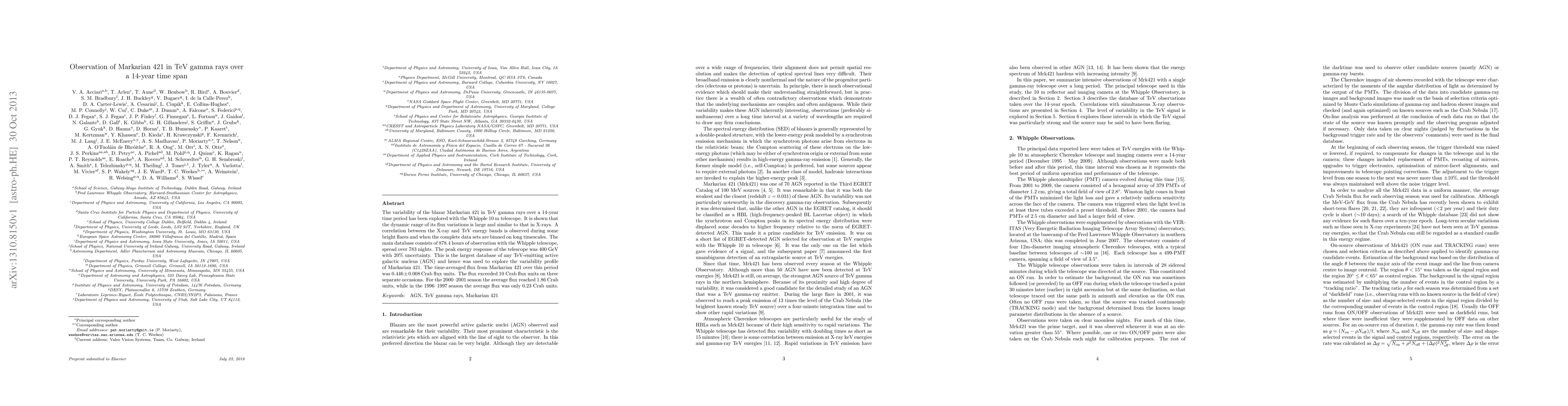 This study uses the Whipple 10 m telescope to observe the TeV gamma-ray variability of the blazar Markarian 421 over 14 years, revealing significant flux variations and a correlation between X-ray and TeV emissions during bright flares. The extensive dataset of 878.4 hours provides insights into the variability profile of this TeV-emitting active galactic nucleus.