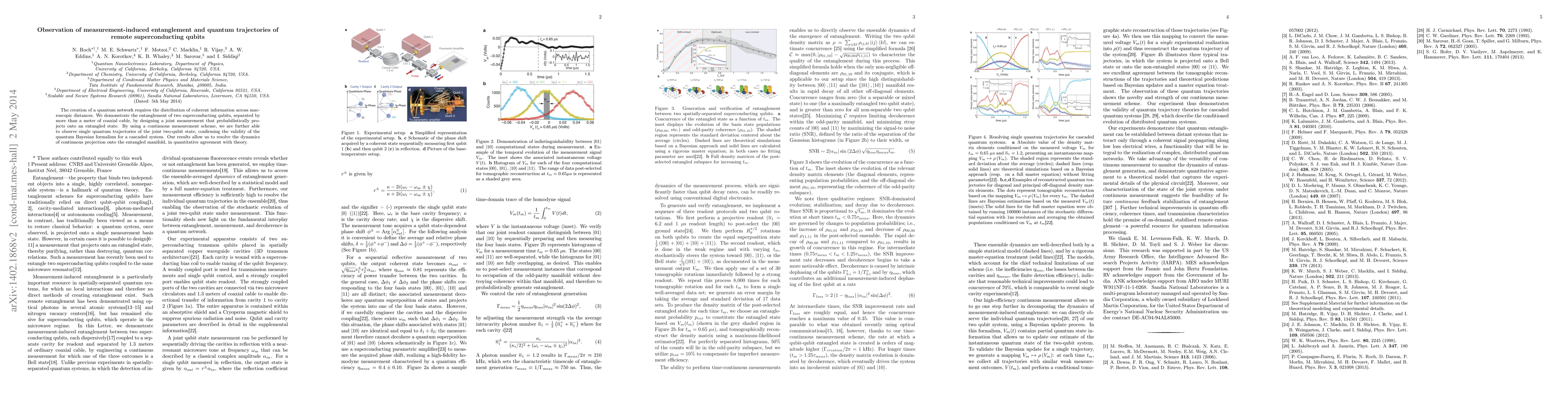 This paper demonstrates the entanglement of two superconducting qubits over a meter apart via a joint measurement, and observes their quantum trajectories using a continuous measurement scheme, confirming the quantum Bayesian formalism for such systems and validating theoretical predictions.