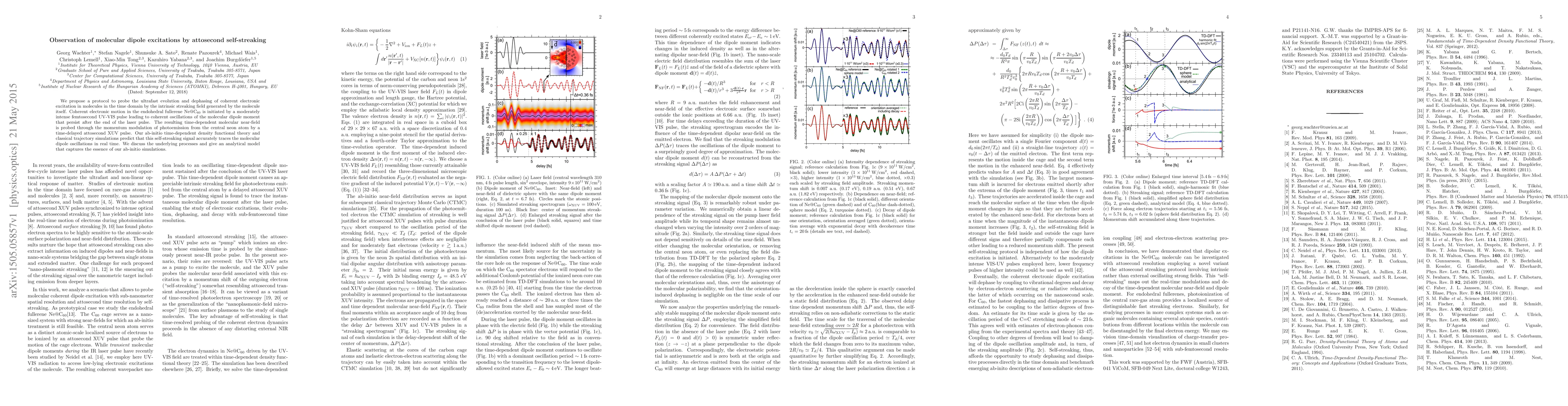 This paper proposes a method to observe ultrafast molecular dipole excitations using attosecond self-streaking, where a femtosecond pulse initiates coherent oscillations in endohedral fullerene \Necsixty~. The time-dependent near-field is probed via photoemission momentum modulation, revealing real-time dipole oscillations, supported by ab-initio simulations and an analytical model.