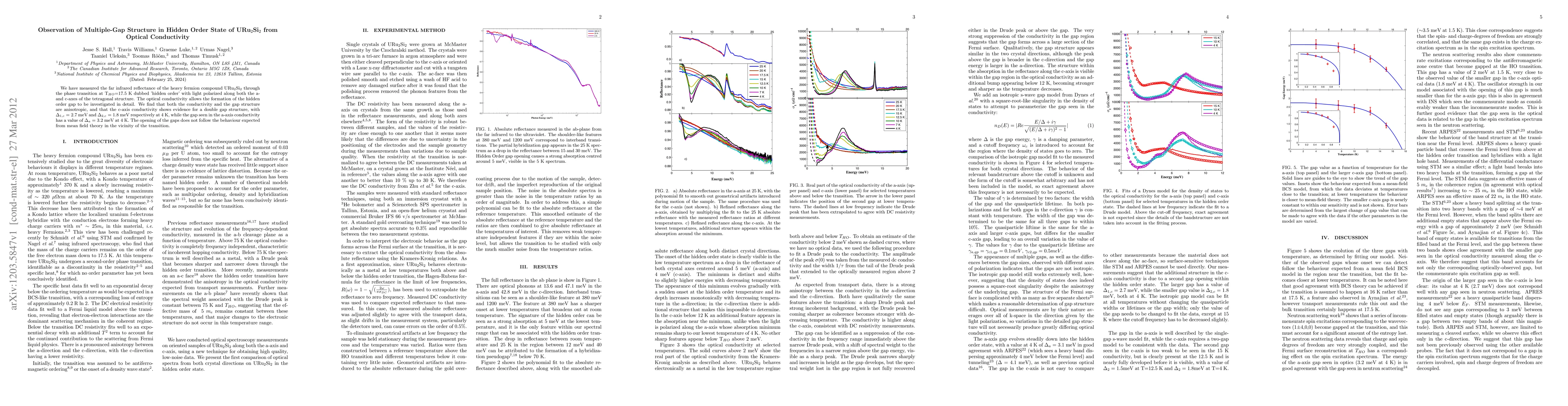 We have measured the far infrared reflectance of the heavy fermion compound URu$_2$Si$_2$ through the phase transition at T$_{HO}$=17.5 K dubbed 'hidden order' with light polarized along both the a- and c-axes of the tetragonal structure. The optical conductivity allows the formation of the hidden order gap to be investigated in detail. We find that both the conductivity and the gap structure are anisotropic, and that the c-axis conductivity shows evidence for a double gap structure, with $\Delta_{1,c}=2.7$ meV and $\Delta_{2,c}=1.8$ meV respectively at 4 K, while the gap seen in the a-axis conductivity has a value of $\Delta_a=3.2$ meV at 4 K. The opening of the gaps does not follow the behaviour expected from mean field theory in the vicinity of the transition.