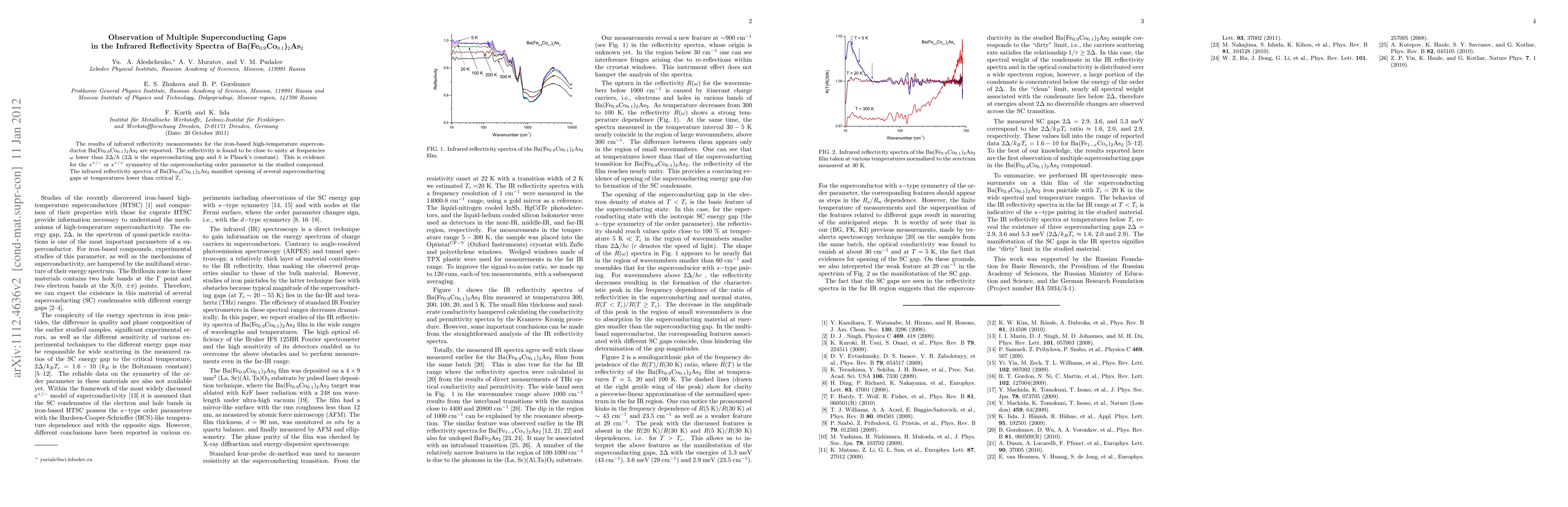 The results of infrared reflectivity measurements for the iron-based high-temperature superconductor Ba(Fe0.9Co0.1)2As2 are reported. The reflectivity is found to be close to unity at frequencies w lower than 2Delta/h (2Delta is the superconducting gap and h is Planck's constant). This is evidence for the s+/- or s+/+ symmetry of the superconducting order parameter in the studied compound. The infrared reflectivity spectra of Ba(Fe0.9Co0.1)2As2 manifest opening of several superconducting gaps at temperatures lower than critical Tc.