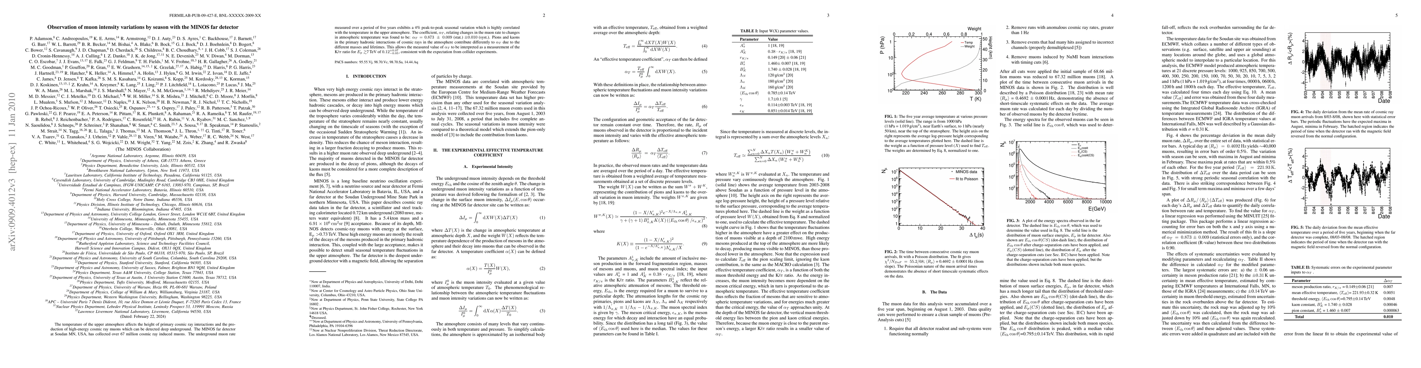 The MINOS far detector observed a 4% seasonal variation in muon intensity correlated with upper atmospheric temperature, with a coefficient $\alpha_T = 0.874 \pm 0.009$ (stat.) $\pm 0.010$ (syst.). This variation provides a measurement of the K/$\pi$ ratio for high-energy cosmic rays, consistent with collider experiments.