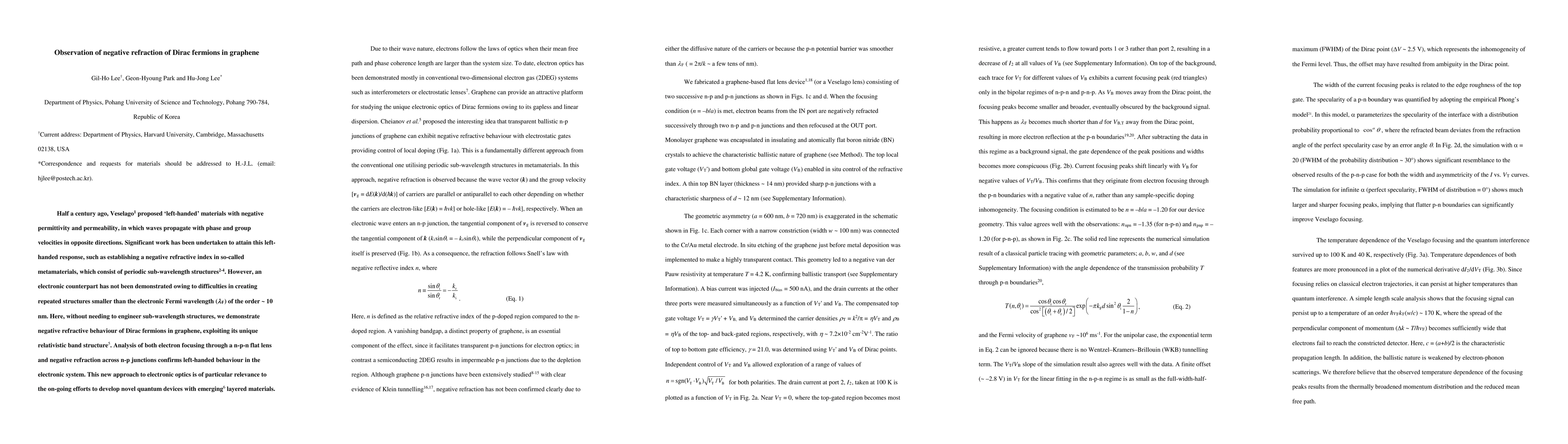 This paper demonstrates negative refraction of Dirac fermions in graphene, showcasing left-handed behaviour without the need for engineered sub-wavelength structures, thus offering a new approach to electronic optics and potentially aiding in the development of novel quantum devices.