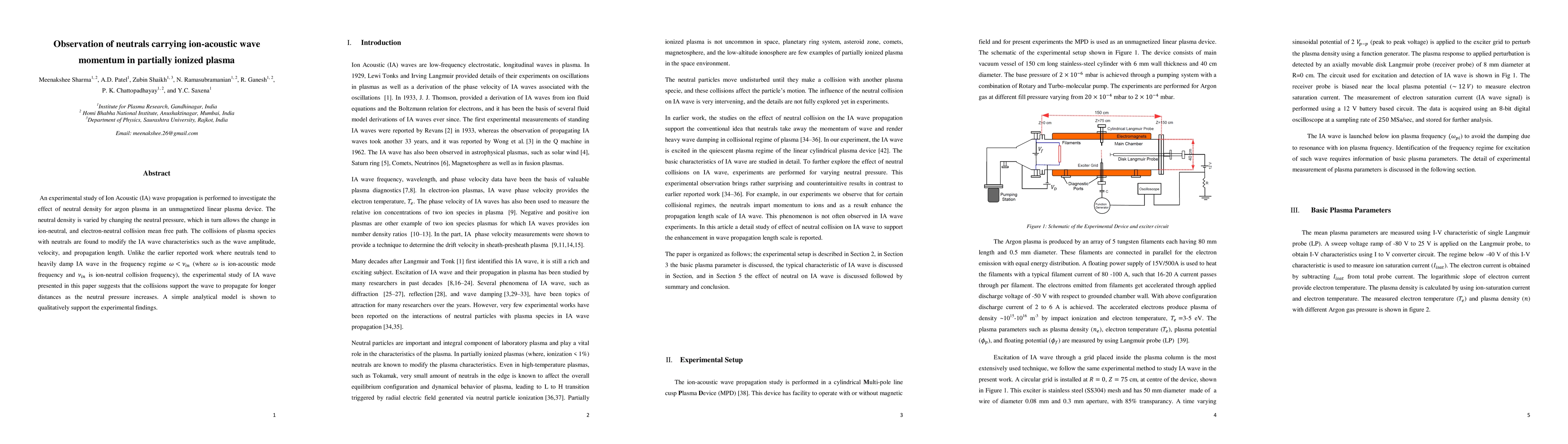 This paper investigates how varying neutral density in argon plasma affects ion-acoustic wave propagation, finding that increased neutral pressure allows the waves to travel further, contrary to previous studies. An analytical model supports these experimental observations.