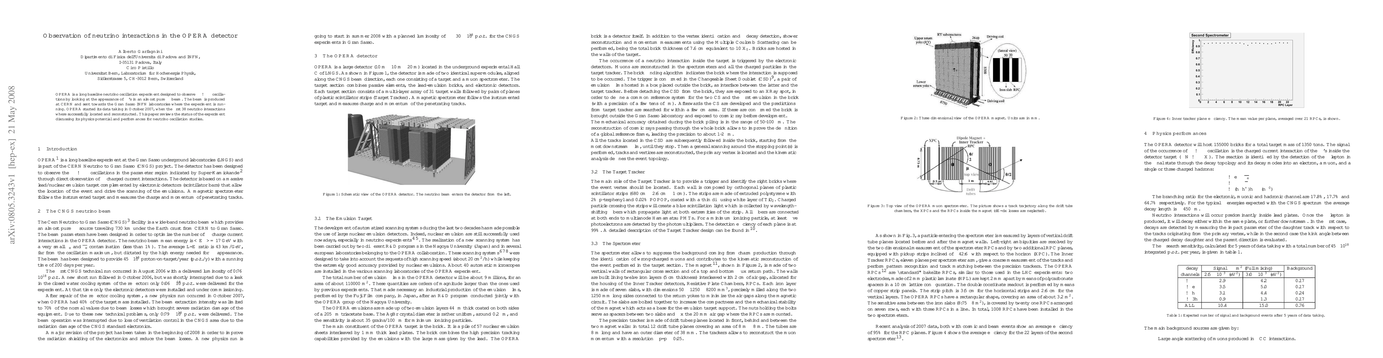 The OPERA experiment aims to observe $\nu_{\mu} \to \nu_{\tau}$ oscillations by detecting $\nu_{\tau}$'s in a $\nu_\mu$ beam from CERN. Initial data from October 2007 confirmed the first 38 neutrino interactions, highlighting the experiment's potential and performance for neutrino oscillation studies.