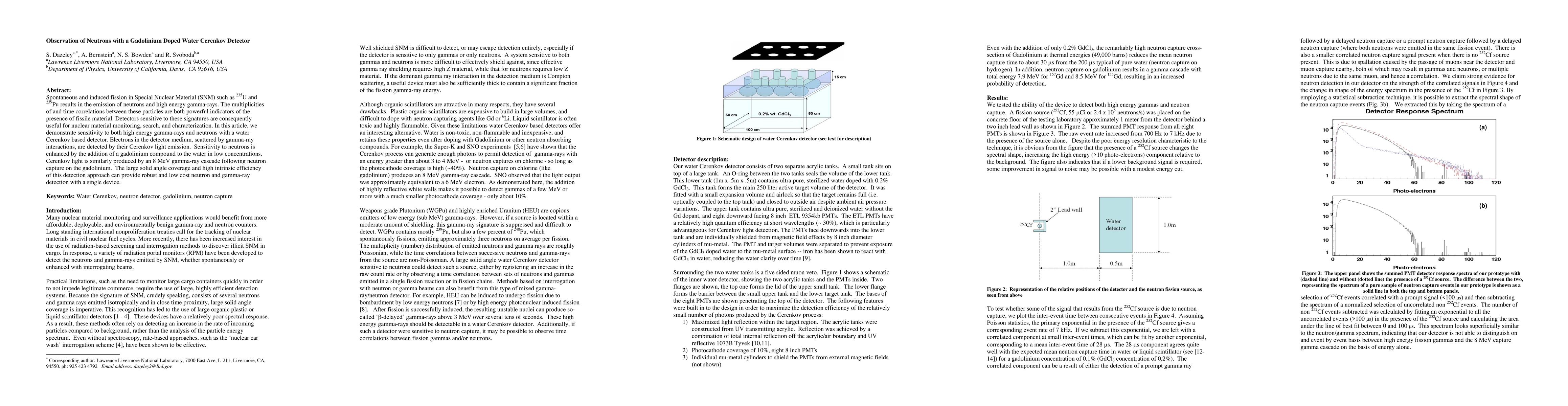 This paper presents a novel water Cerenkov detector doped with gadolinium to enhance neutron sensitivity, demonstrating the ability to detect both high-energy gamma-rays and neutrons. The method uses Cerenkov light from scattered electrons and gamma-ray cascades following neutron capture, offering a cost-effective, single-device solution for nuclear material monitoring.