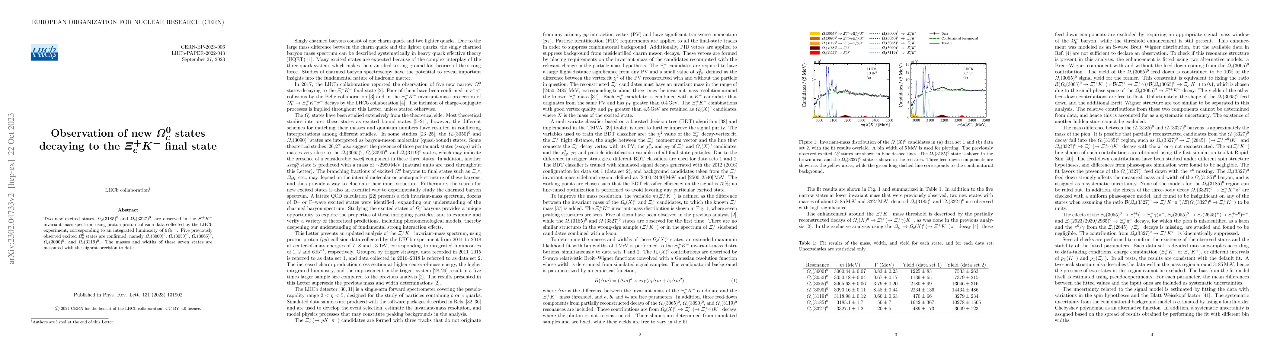 The LHCb experiment observes two new excited $\Omega_c^0$ states, $\Omega_c(3185)^0$ and $\Omega_c(3327)^0$, decaying to $\Xi_c^+K^-$, and confirms five previously known states, with precise measurements of their masses and widths.