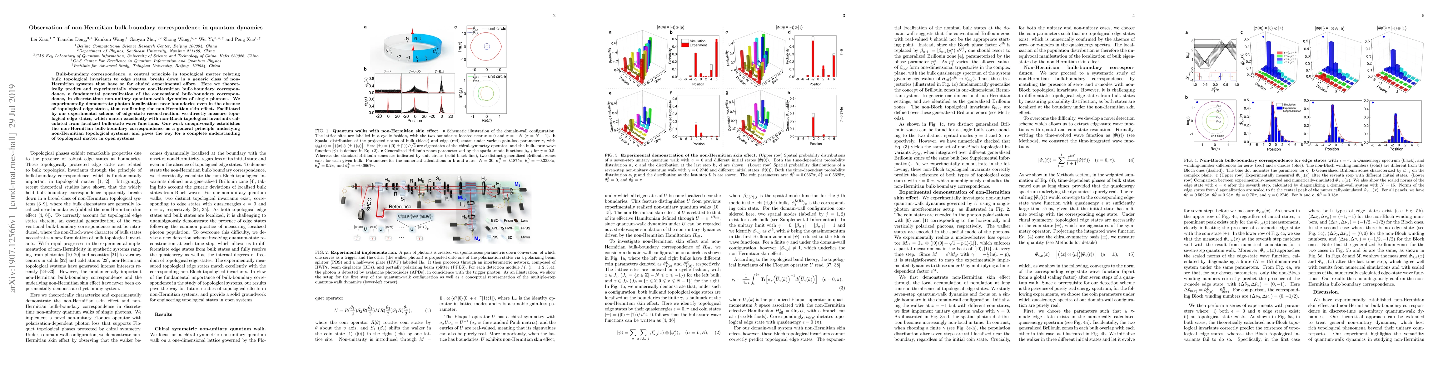 This research paper theoretically and experimentally demonstrates a novel non-Hermitian bulk-boundary correspondence in quantum dynamics, showing photon localizations near boundaries without topological edge states, thus confirming the non-Hermitian skin effect. The findings establish this correspondence as a fundamental principle for non-Hermitian topological systems.
