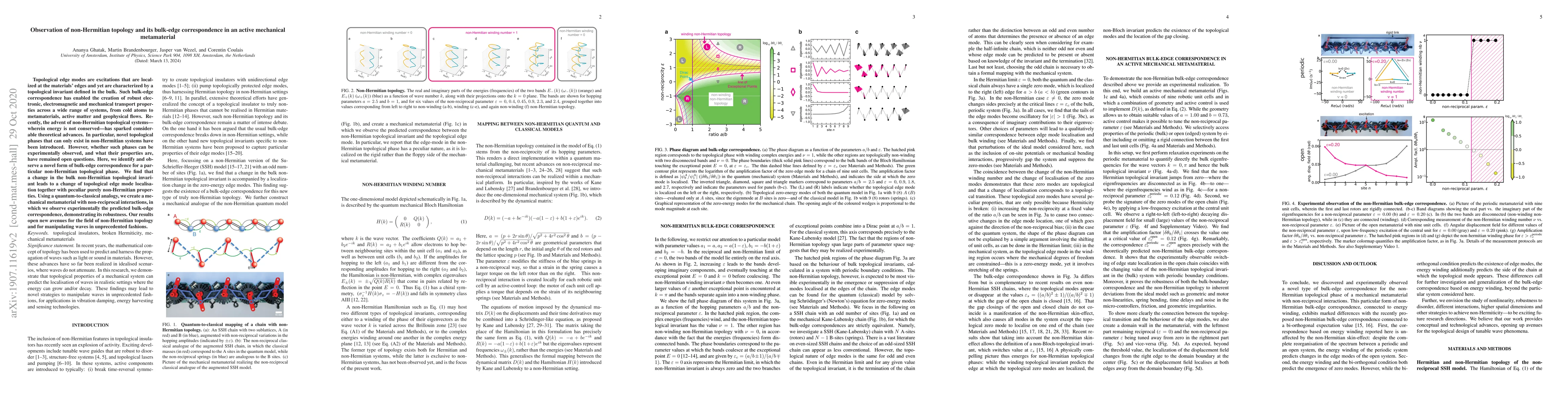 This paper observes the bulk-edge correspondence in a non-Hermitian topological phase within an active mechanical metamaterial, demonstrating experimentally the novel topological edge modes and their robustness. The findings reveal new possibilities for manipulating waves in non-Hermitian systems.