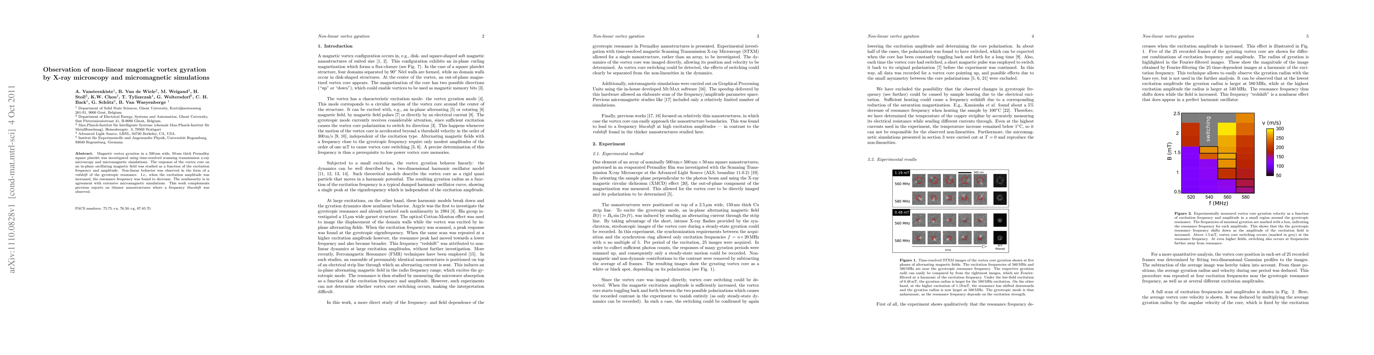 This study investigates magnetic vortex gyration in a Permalloy platelet using X-ray microscopy and simulations, revealing non-linear behavior characterized by a redshift in gyrotropic resonance with increased excitation amplitude, corroborated by micromagnetic simulations. This contrasts with previous findings in thinner structures showing a blueshift.
