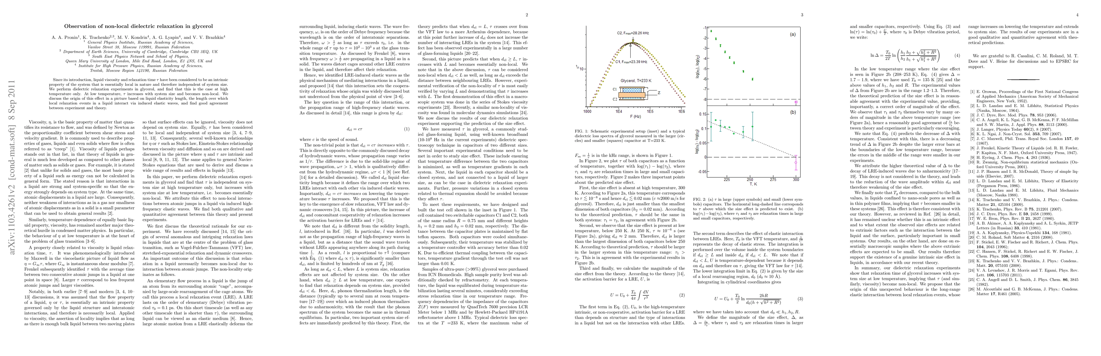 This study reveals that dielectric relaxation in glycerol is local and intrinsic at high temperatures, but becomes non-local and size-dependent at low temperatures due to interactions mediated by liquid elasticity, as evidenced by experimental and theoretical agreement.