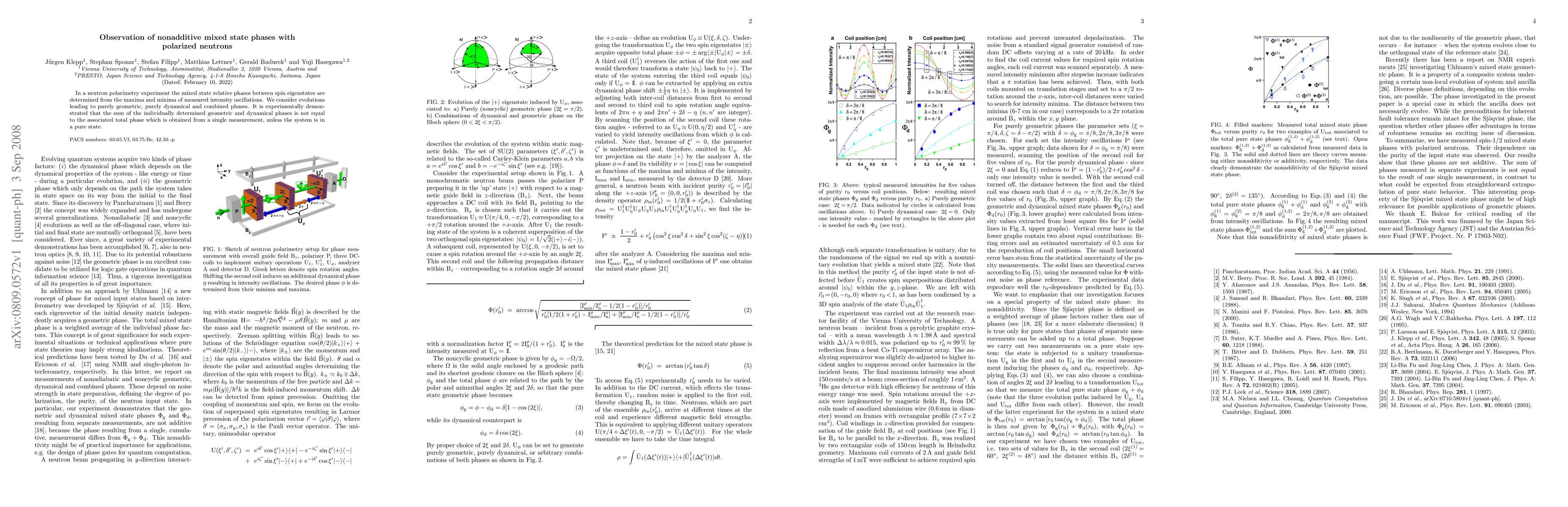 In a neutron polarimetry experiment the mixed state relative phases between spin eigenstates are determined from the maxima and minima of measured intensity oscillations. We consider evolutions leading to purely geometric, purely dynamical and combined phases. It is experimentally demonstrated that the sum of the individually determined geometric and dynamical phases is not equal to the associated total phase which is obtained from a single measurement, unless the system is in a pure state.