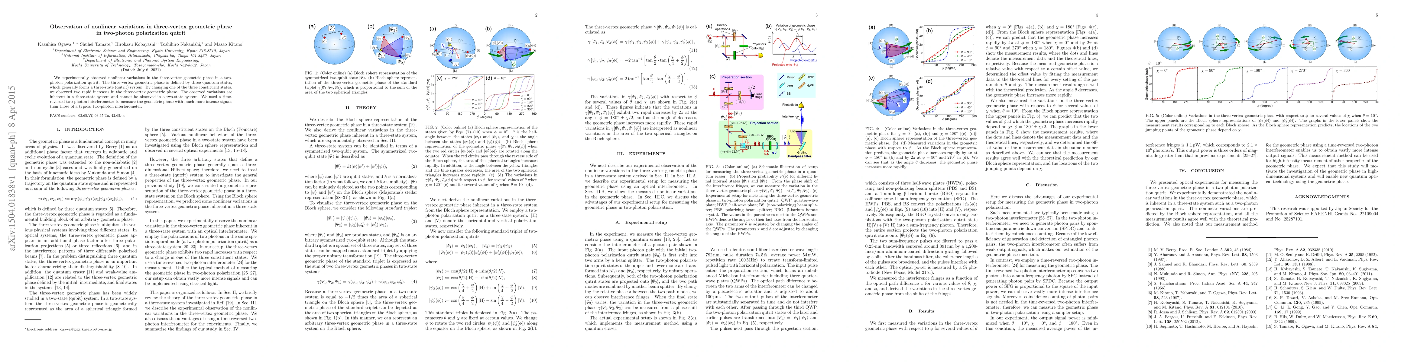 We experimentally observed nonlinear variations in the three-vertex geometric phase in a two- photon polarization qutrit. The three-vertex geometric phase is defined by three quantum states, which generally forms a three-state (qutrit) system. By changing one of the three constituent states, we observed two rapid increases in the three-vertex geometric phase. The observed variations are inherent in a three-state system and cannot be observed in a two-state system. We used a time-reversed two-photon interferometer to measure the geometric phase with much more intense signals than those of a typical two-photon interferometer.