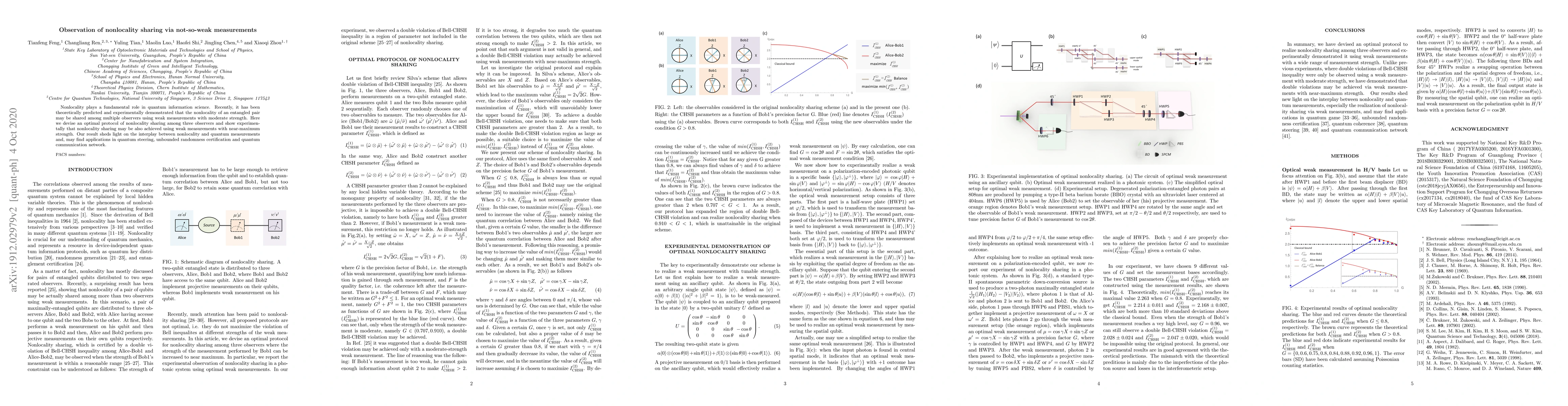 This paper presents an optimal protocol for nonlocality sharing among three observers using weak measurements, demonstrating that nonlocality can be shared even with near-maximum measurement strength. The findings enhance understanding of the relationship between nonlocality and quantum measurements, with potential applications in quantum steering and communication networks.