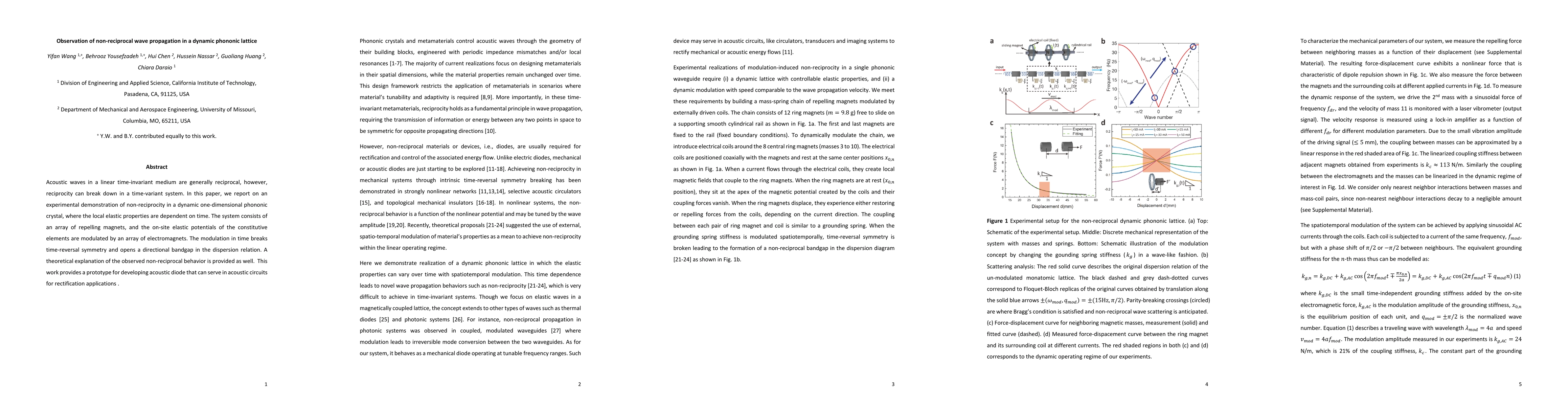 Researchers have discovered nonreciprocal wave propagation in a dynamic phononic crystal, breaking time-reversal symmetry and opening a directional band gap for potential use in phononic diodes.