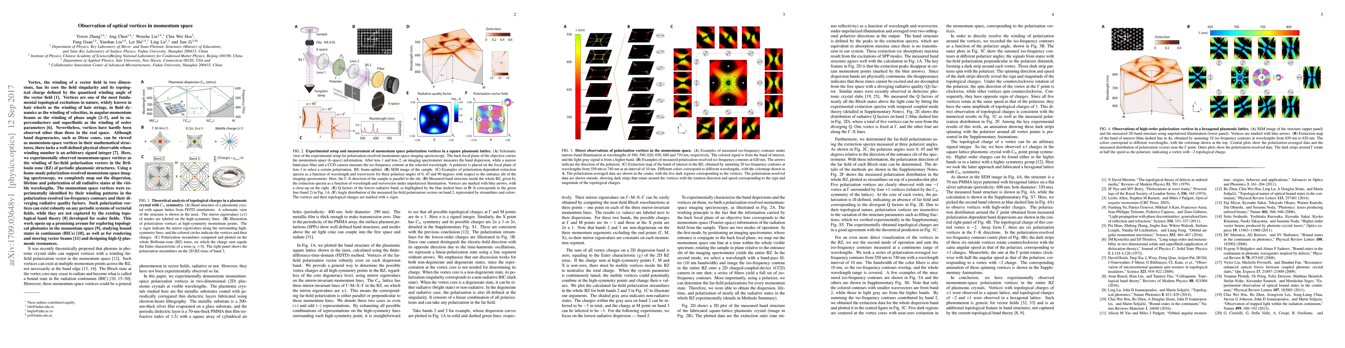 Researchers have experimentally observed momentum-space vortices in periodic plasmonic structures, which can exist robustly on any vectorial field system and offer a promising avenue for exploring topological photonics.