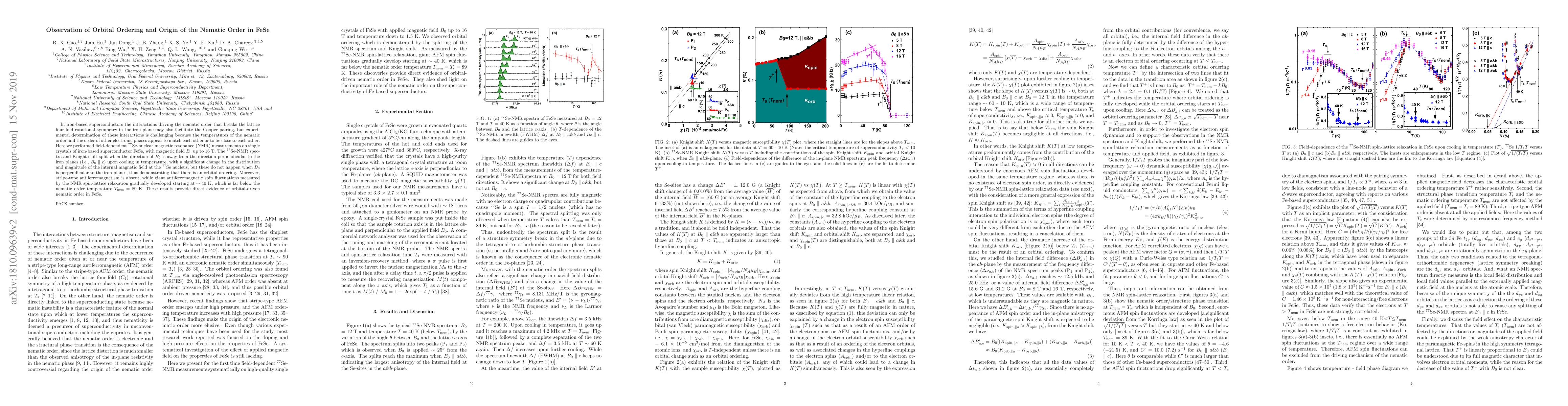 This study reveals that orbital ordering, observed via 77Se-NMR in FeSe, is the origin of nematic order, while giant antiferromagnetic spin fluctuations contribute to superconductivity. The suppression of orbital ordering with magnetic field and its distinct behavior from antiferromagnetism support this conclusion.