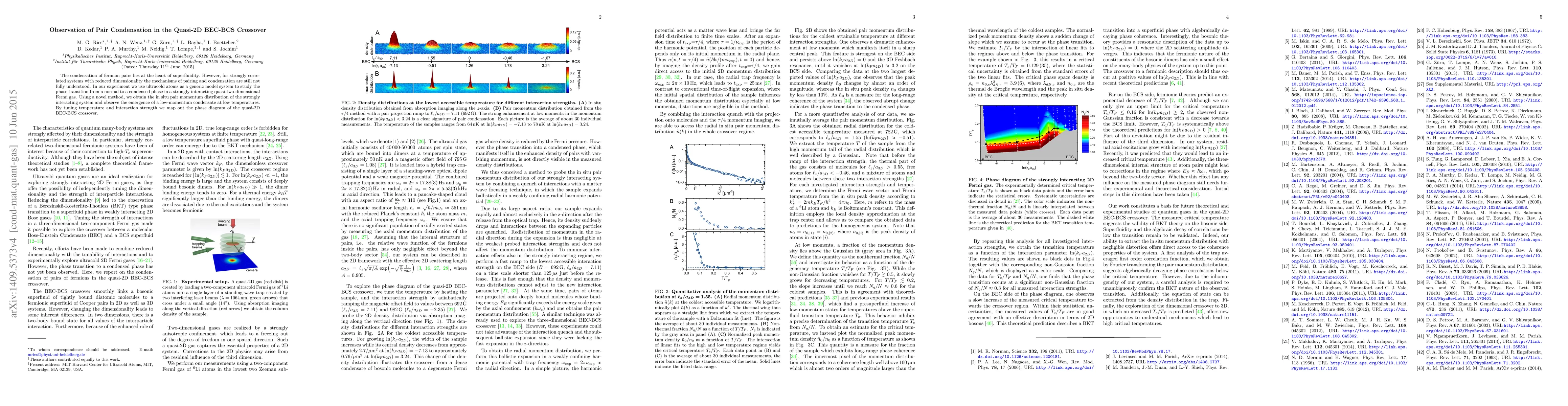 This research observes the condensation of fermion pairs in a quasi-2D Fermi gas using ultracold atoms, revealing a low-momentum condensate at low temperatures. The study maps out the phase diagram of the BEC-BCS crossover, shedding light on pairing mechanisms in strongly correlated, low-dimensional systems.