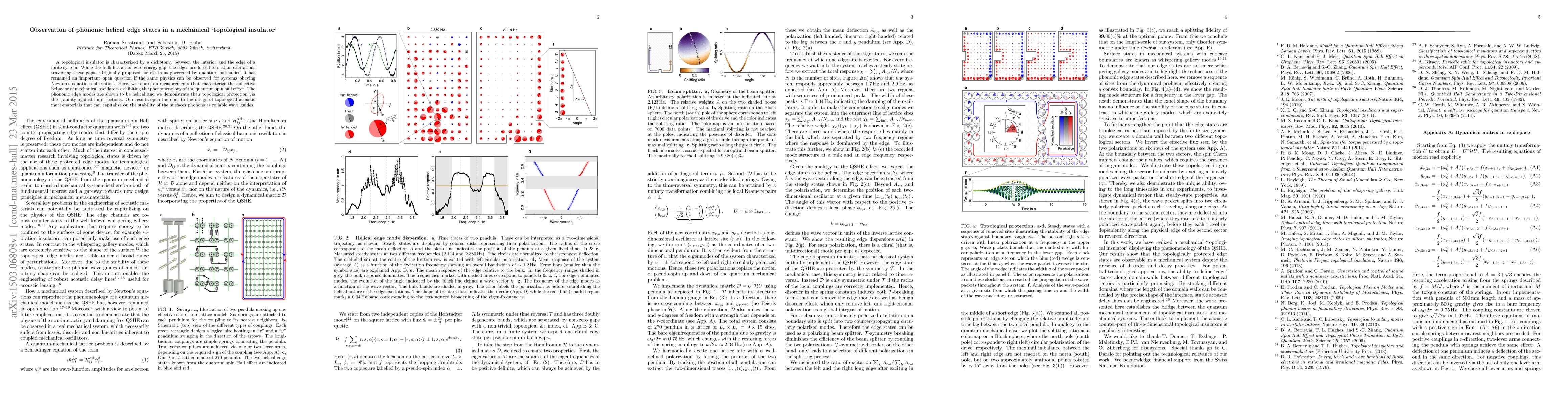 A topological insulator is characterized by a dichotomy between the interior and the edge of a finite system: While the bulk has a non-zero energy gap, the edges are forced to sustain excitations traversing these gaps. Originally proposed for electrons governed by quantum mechanics, it has remained an important open question if the same physics can be observed for systems obeying Newton's equations of motion. Here, we report on measurements that characterize the collective behavior of mechanical oscillators exhibiting the phenomenology of the quantum spin hall effect. The phononic edge modes are shown to be helical and we demonstrate their topological protection via the stability against imperfections. Our results open the door to the design of topological acoustic meta-materials that can capitalize on the stability of the surfaces phonons as reliable wave guides.